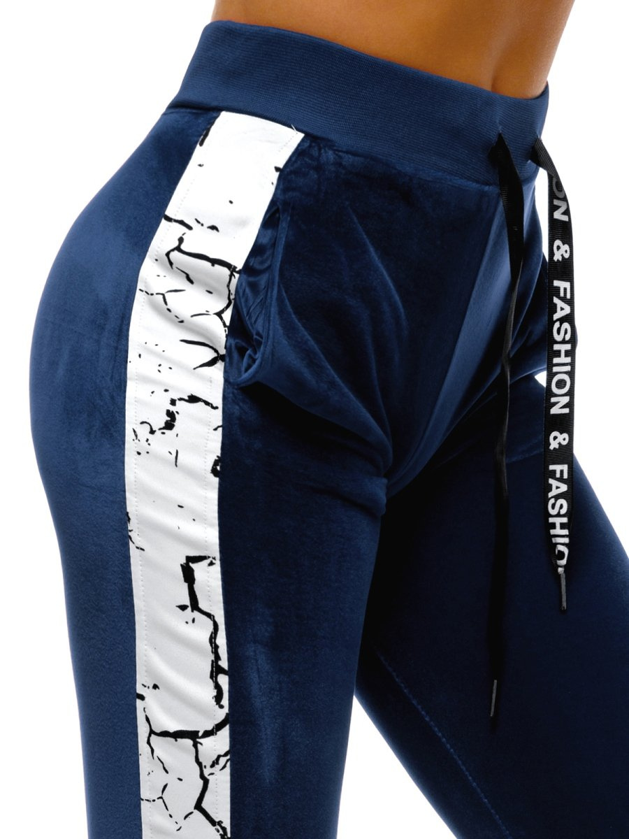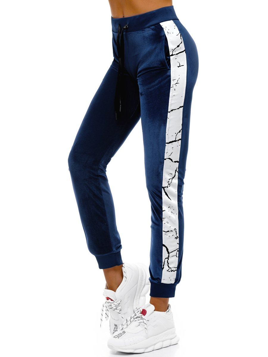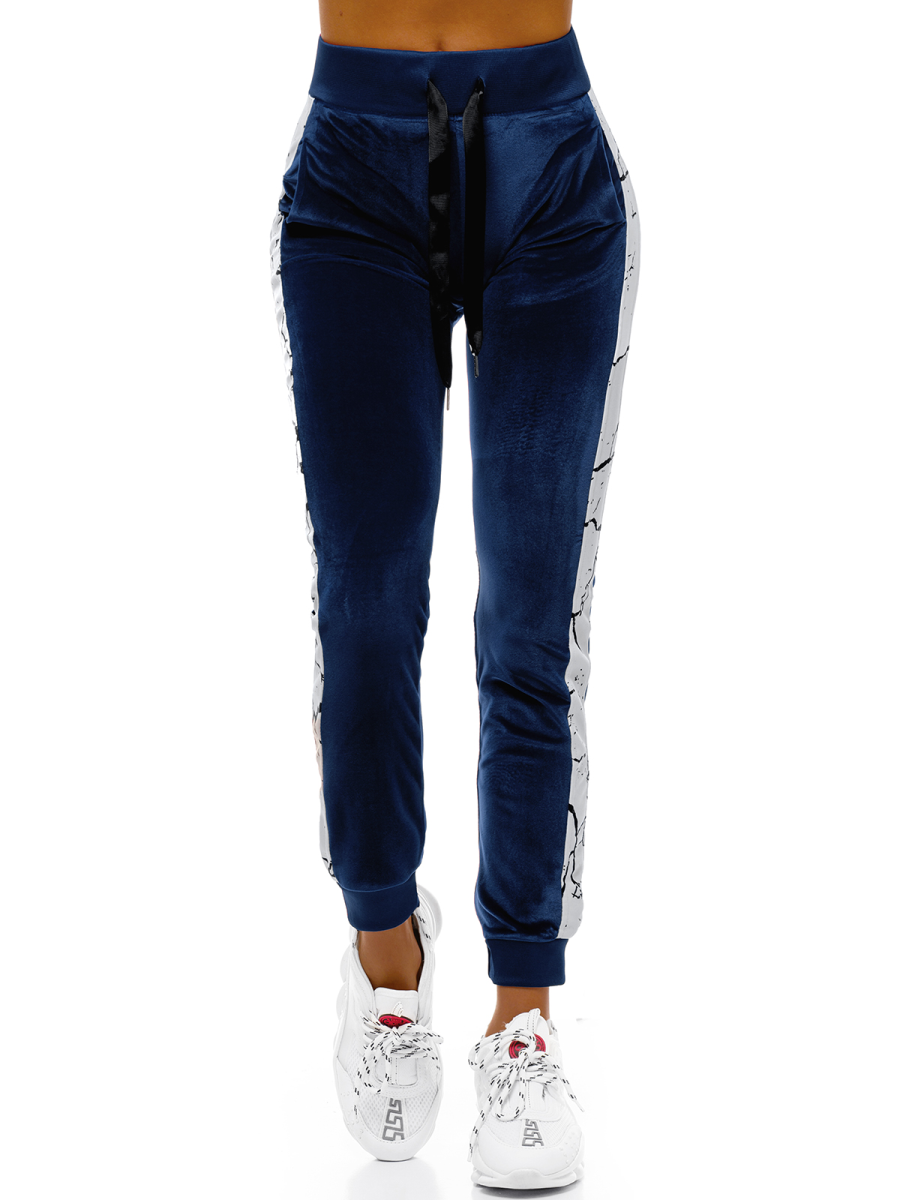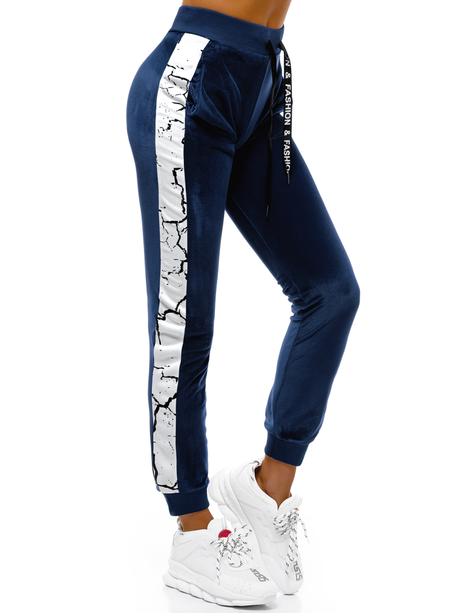 Spodnie zostały wykonane z połączenia wysokiej jakości bawełny oraz poliestru, dzięki czemu ładnie dopasowują się do sylwetki, nie rozciągają i nie gniotą, są wygodne w noszeniu i miłe w dotyku. Dresy mają w pasie praktyczny ściągacz, który skutecznie zabezpiecza je przed przesuwaniem się i zsuwaniem. Po bokach znajdują się kieszenie, do których schować można telefon, portfel czy klucze. Oryginalnego charakteru nadają spodniom biegnące wzdłuż nogawek kontrastowe pasy.