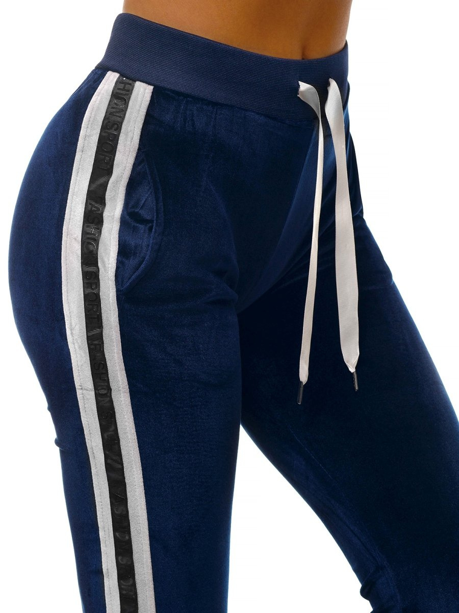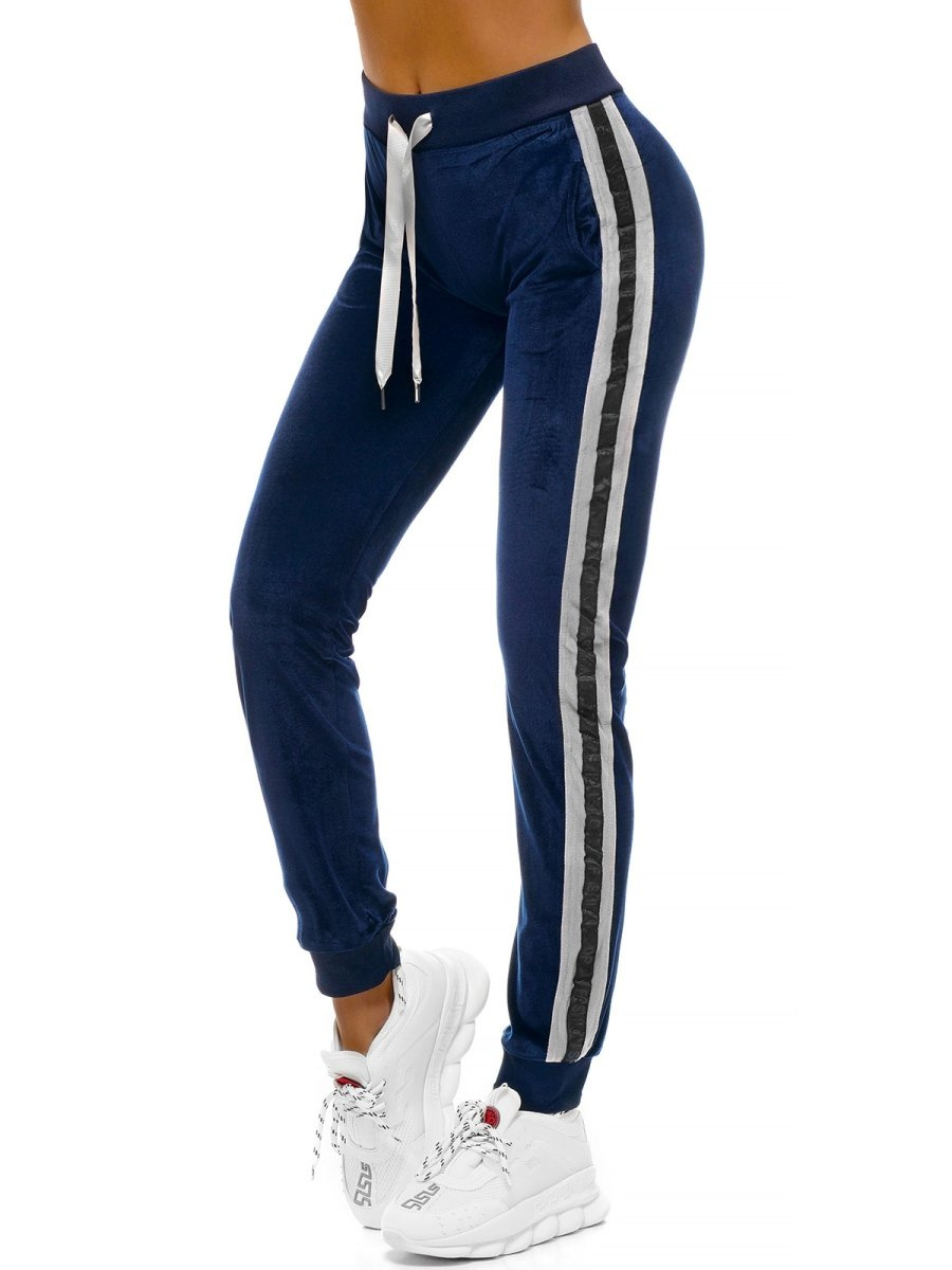 Spodnie wyglądają bardzo oryginalnie, czego zasługą są biegnące wzdłuż nogawek kontrastowe lampasy. W pasie mają one ściągacz, który ułatwia dopasowanie ich do sylwetki i skutecznie chroni przed przesuwaniem się i zsuwaniem. Po bokach znajdują się kieszenie, do których schować można niezbędne drobiazgi. Spodnie zostały wykonane z połączenia bawełny oraz poliestru, dzięki czemu estetycznie się prezentują, nie rozciągają się i są miłe w dotyku