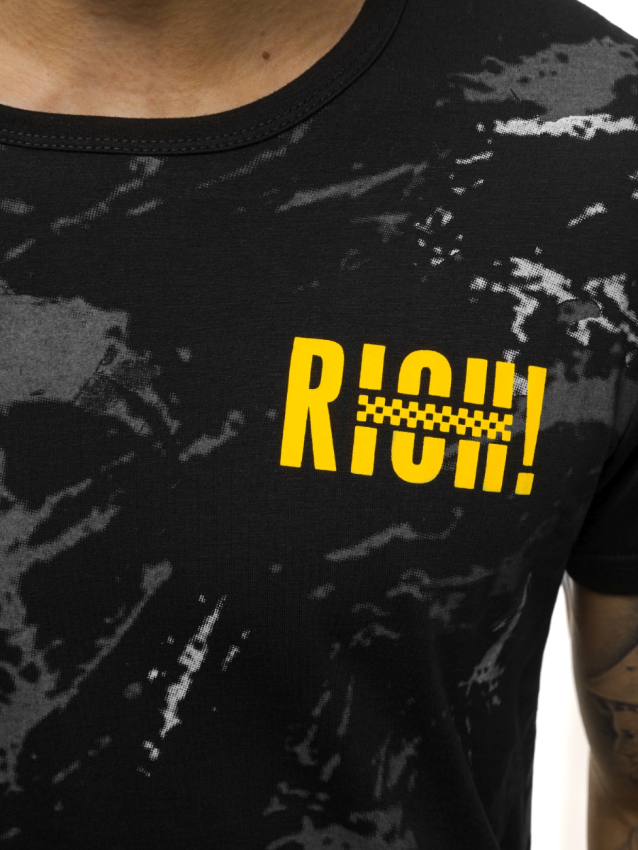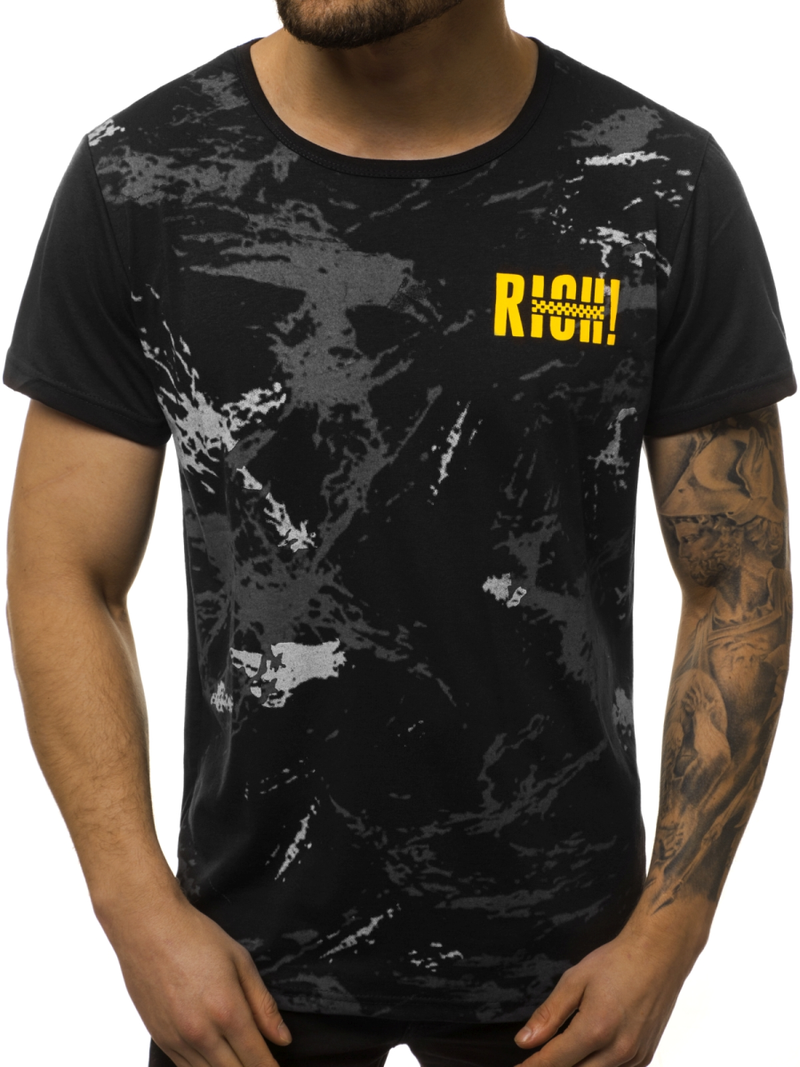 Na przodzie t-shirtu znajduje się duży nadruk, dzięki czemu wygląda on bardzo efektownie. Koszulka ma klasyczny, okrągły dekolt typu U-neck. Wykonana została ona z połączenia bawełny oraz poliestru. Sprawia to, że ładnie dopasowuje się do sylwetki, jest przewiewna, przyjemna w dotyku, wygodna w noszeniu oraz odporna na uszkodzenia i zagniecenia.