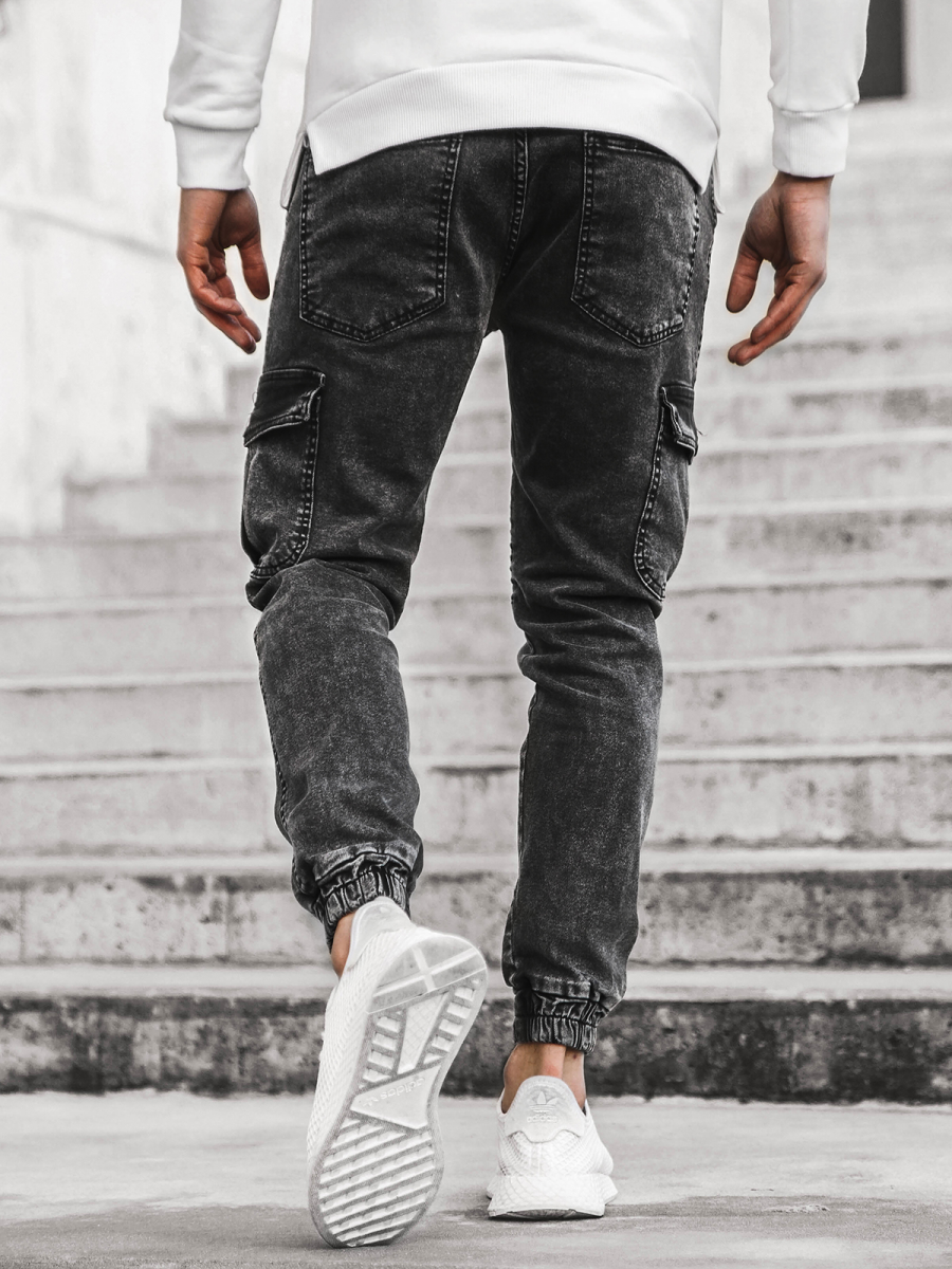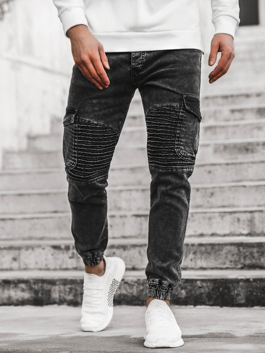 Dzięki znajdującym się przy nogawkach ściągaczom, spodnie nabierają sportowego charakteru. Mają one pojemne kieszenie z przodu, z tyłu i po bokach, do których schować można telefon, klucze czy portfel. Spodnie posiadają rozporek zapinany na guziki. Wyprodukowano je z bawełny z domieszką poliestru. Sprawia to, że ładnie układają się na ciele, są wygodne w noszeniu, miłe w dotyku, przewiewne oraz odporne na uszkodzenia i zagniecenia.