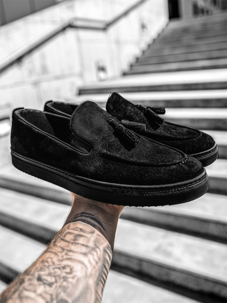 Tego typu wsuwane trampki określa się mianem slip — on. Model ten posiada okrągły nosek i ozdobne chwosty, które nadają butom oryginalnego wyglądu. Jego zewnętrzna część wykonana została z wysokiej jakości materiału syntetycznego, wnętrze — z tkaniny tekstylnej, a podeszwa — z tworzywa sztucznego.