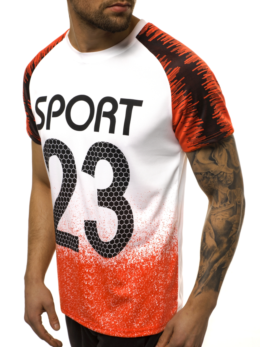 Koszulka prezentuje się bardzo oryginalnie, czego zasługą jest duży nadruk na przodzie oraz rękawy w kontrastowych kolorach. T-shirt ma klasyczny, okrągły dekolt typu U-neck. Wykonany został on z bawełny z domieszką elastanu, dzięki czemu ładnie dopasowuje się do sylwetki, jest wygodny w noszeniu, przyjemny w dotyku, przewiewny i odporny na uszkodzenia oraz zagniecenia.