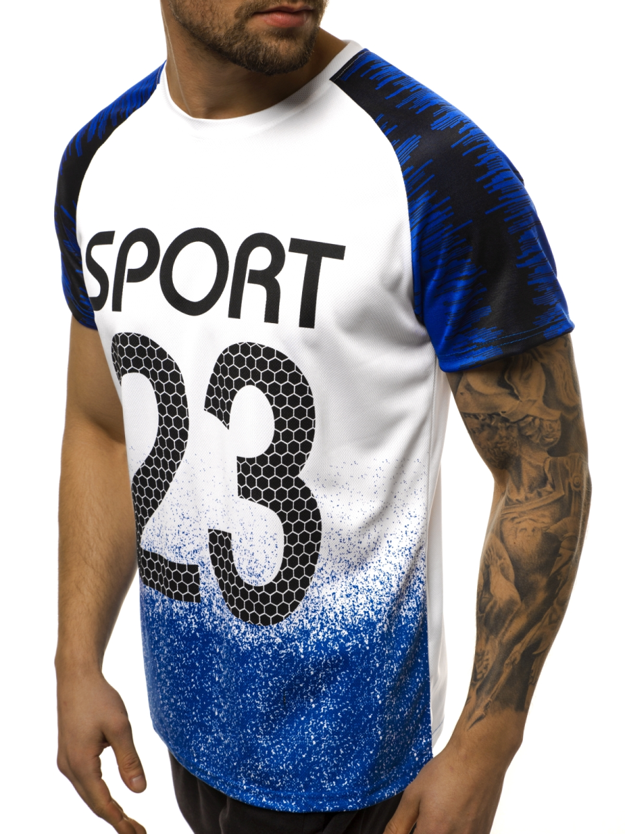 Koszulka prezentuje się bardzo oryginalnie, czego zasługą jest duży nadruk na przodzie oraz rękawy w kontrastowych kolorach. T-shirt ma klasyczny, okrągły dekolt typu U-neck. Wykonany został on z bawełny z domieszką elastanu, dzięki czemu ładnie dopasowuje się do sylwetki, jest wygodny w noszeniu, przyjemny w dotyku, przewiewny i odporny na uszkodzenia oraz zagniecenia.