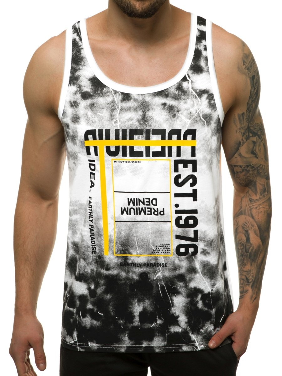 Mianem tanktopu określa się koszulkę pozbawioną rękawów. Na jej środku znajduje się duży, rzucający się w oczy nadruk. Tanktop został wykonany z połączenia bawełny oraz poliestru. Sprawia to, że ładnie dopasowuje się do sylwetki, nie rozciąga i nie gniecie, jest wygodny w noszeniu i miły w dotyku.