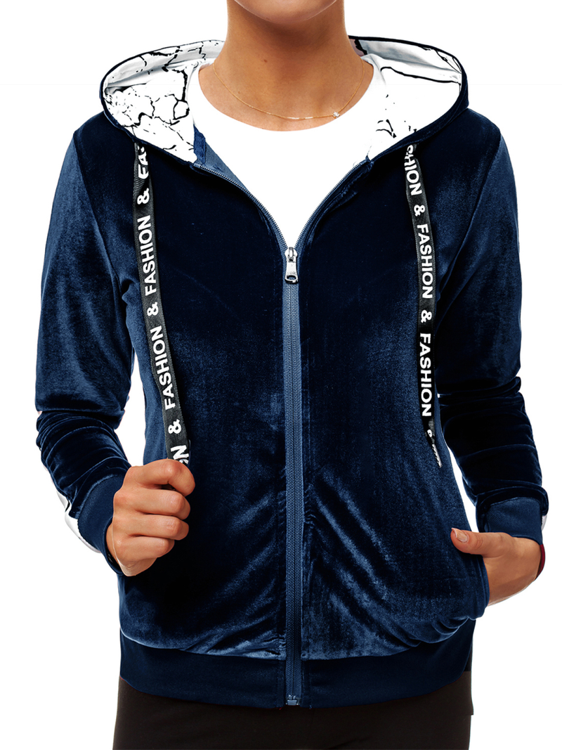 Bluza jest zapinana na zamek błyskawiczny. Posiada praktyczny kaptur, który świetnie sprawdzać będzie się w chłodne, wietrzne dni. Bluza ma kieszenie po bokach, do których schować można telefon czy klucze. Jej dół i rękawy zostały wykończone ściągaczami. Oryginalnego charakteru nadają bluzie znajdujące się na rękawach kontrastowe wstawki. Wykonana została ona z połączenia bawełny oraz poliestru. Sprawia to, że ładnie dopasowuje się ona do sylwetki, jest wygodna w noszeniu, miła w dotyku, nie gniecie się i nie rozciąga.