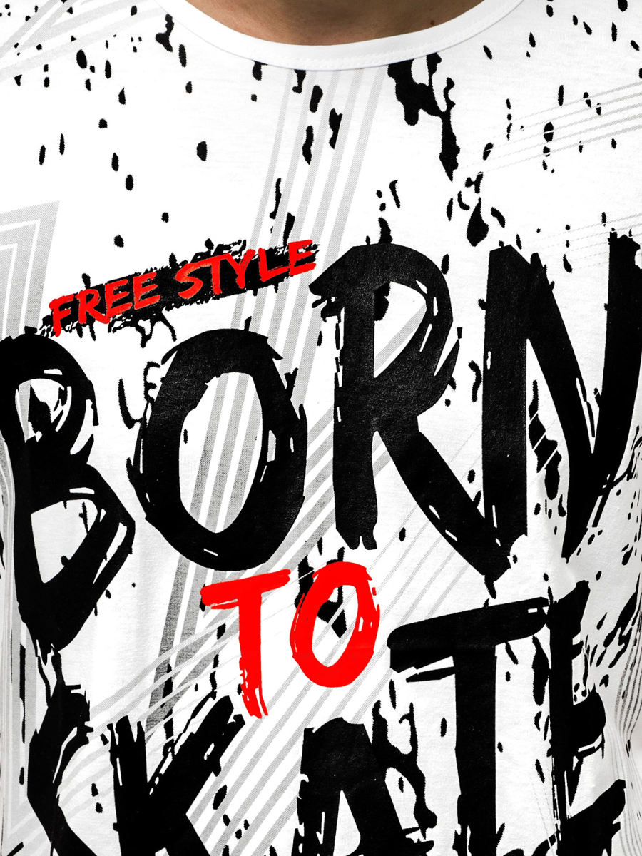 Koszulka ma klasyczny, okrągły dekolt typu U-neck. Jej przód oraz rękawy pokrywa oryginalny nadruk. T-shirt został wykonany z połączenia bawełny oraz poliestru. Sprawia to, że jest bardzo wygodny w noszeniu, przyjemny w dotyku, odporny na uszkodzenia i zagniecenia oraz ładnie układa się na ciele.