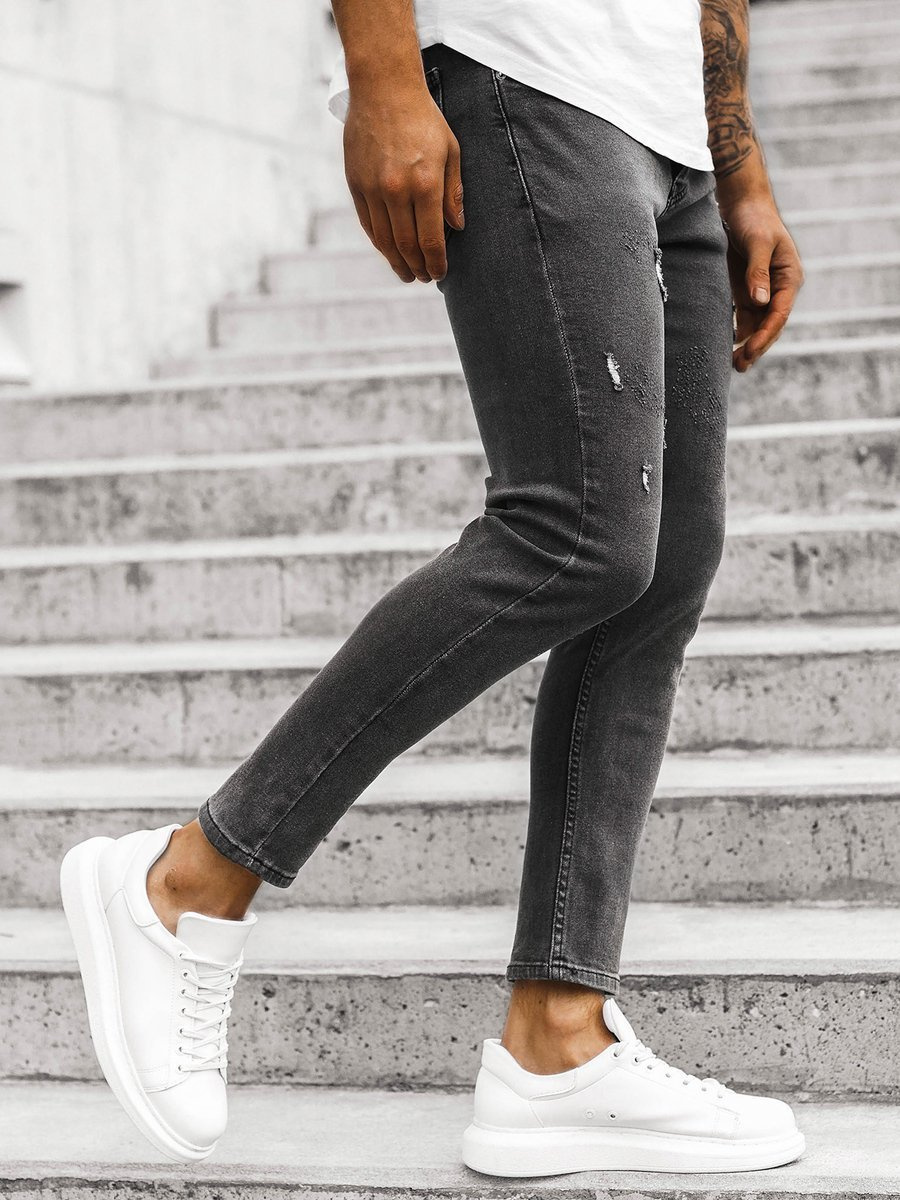 Spodnie zostały wykonane z bawełny z dodatkiem elastanu. Sprawia to, że ładnie dopasowują się one do sylwetki, są wygodne w noszeniu, miłe w dotyku, nie rozciągają się i nie gniotą. Spodnie mają kieszenie z przodu i z tyłu, do których schować można klucze, portfel czy telefon. Oryginalnego wyglądu nadają im znajdujące się na nogawkach przetarcia.