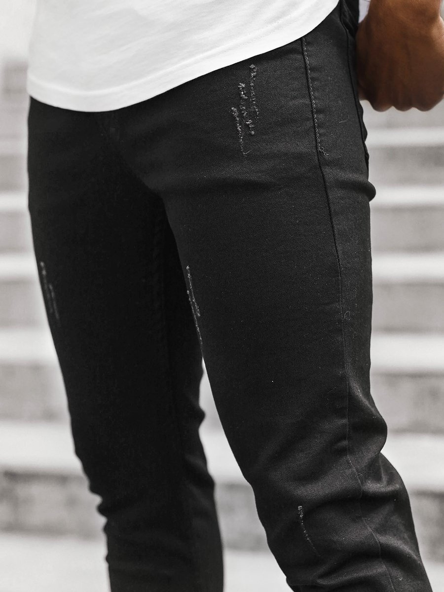 Spodnie mają proste nogawki, na których znajdują się przetarcia nadające im oryginalnego charakteru. Z przodu oraz z tyłu umieszczono kieszenie, do których schować można klucze, portfel czy telefon. Spodnie zostały wykonane z bawełny z domieszką elastanu. Sprawia to, że ładnie dopasowują się do sylwetki, są wygodne w noszeniu, miłe w dotyku, nie rozciągają się i nie gniotą.