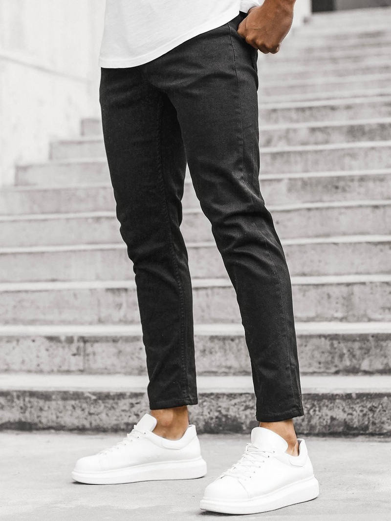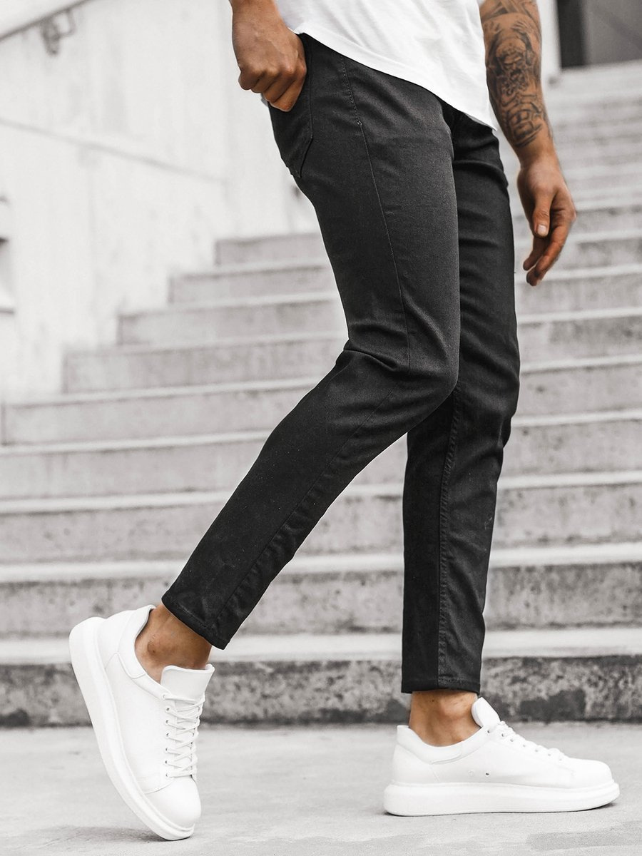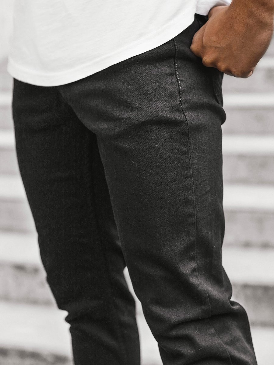 Spodnie zostały wykonane z wysokiej jakości bawełny z domieszką elastanu. Sprawia to, że są one wygodne w noszeniu, miłe w dotyku, nie rozciągają się i nie gniotą oraz ładnie dopasowują do sylwetki. Mają one kieszenie z przodu i z tyłu, do których schować można telefon, klucze czy portfel.