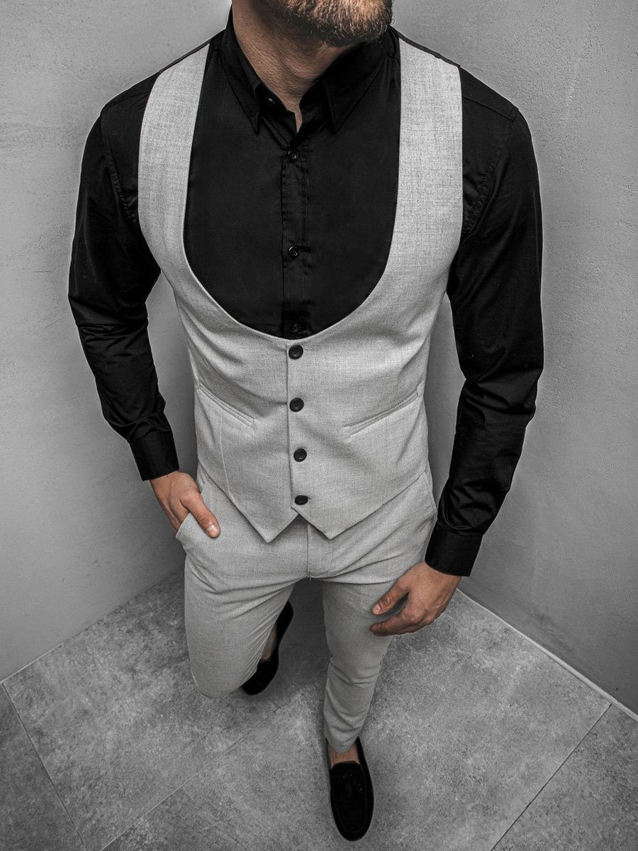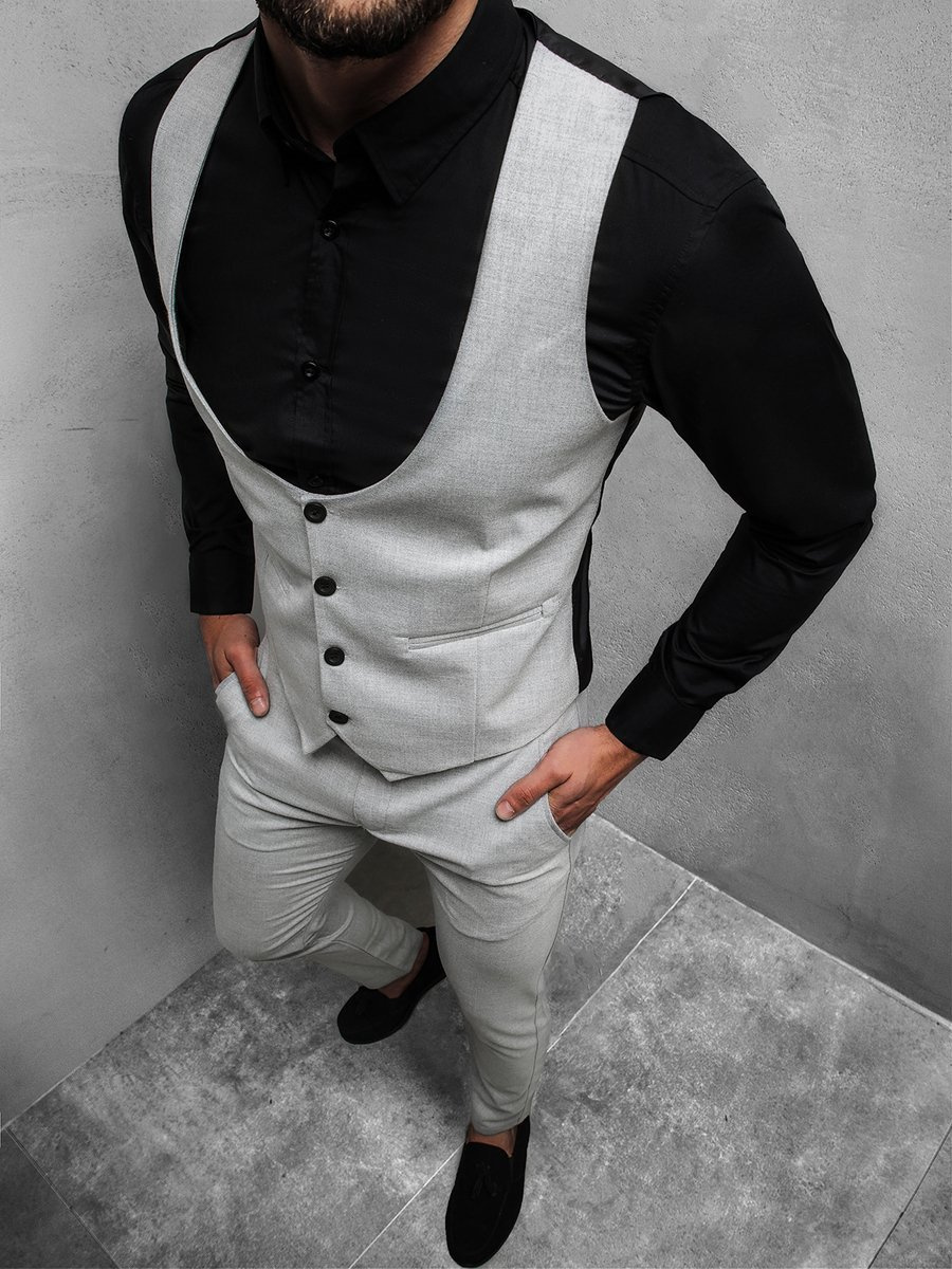 - ELEGANCKI KOMPLET MĘSKI Z NAJNOWSZEJ KOLEKCJI SKŁADAJĄCY SIĘ Z KAMIZELKI I SPODNI