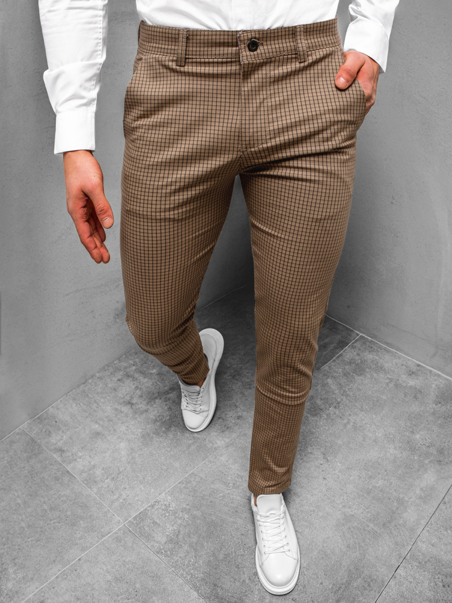 Cechą charakterystyczną spodni typu chinosy jest duża ilość kieszeni. W tym przypadku znajdują się one z przodu oraz z tyłu. Do takich kieszeni schować można telefon, klucze czy portfel. Chinosy pokrywa uniwersalny wzór w kratę, który nigdy nie wychodzi z mody. Są one bardzo wygodne w noszeniu, miłe w dotyku i ładnie dopasowują się do sylwetki.