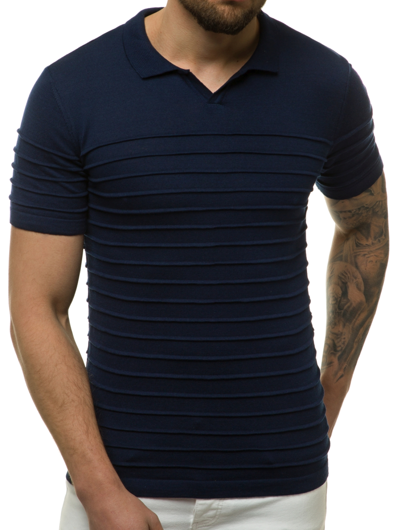 Bluzka polo z dzianiny, krótki rękaw męska granatowa OZONEE L/2318