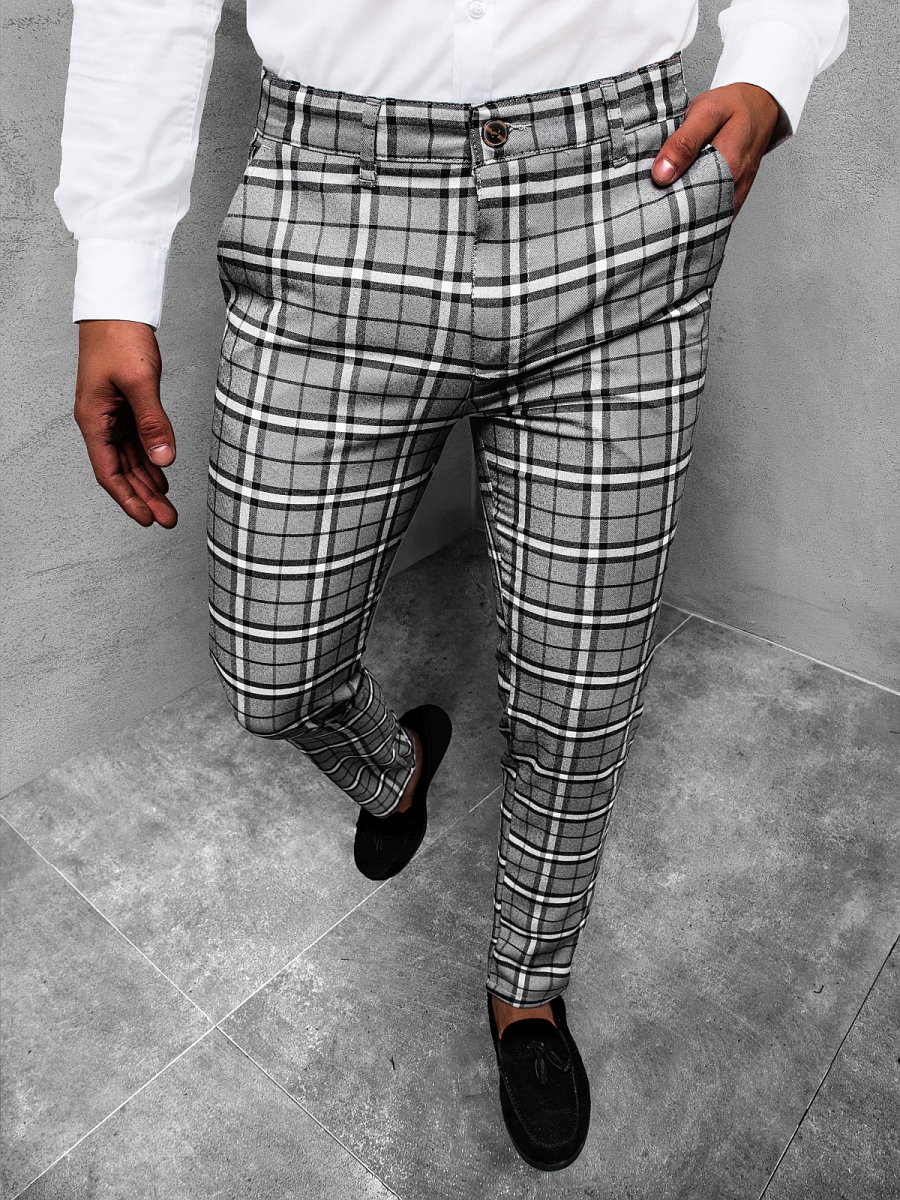 Krata to uniwersalny wzór, który nigdy nie wychodzi z mody. Sprawia to, że kupując takie spodnie można mieć pewność, że będą się one prezentowały równie korzystnie za kilka sezonów i że z łatwością będzie można dopasować je do pozostałych ubrań znajdujących się w szafie. Takie kraciaste chinosy nadają się na wiele różnych okazji. Założyć można je na spotkanie ze znajomymi, randkę, rodzinną uroczystość, do biura czy na rozmowę kwalifikacyjną. Spodnie będą się bardzo dobrze komponowały z innymi ubraniami z naszego sklepu internetowego, na przykład koszulami i marynarkami.