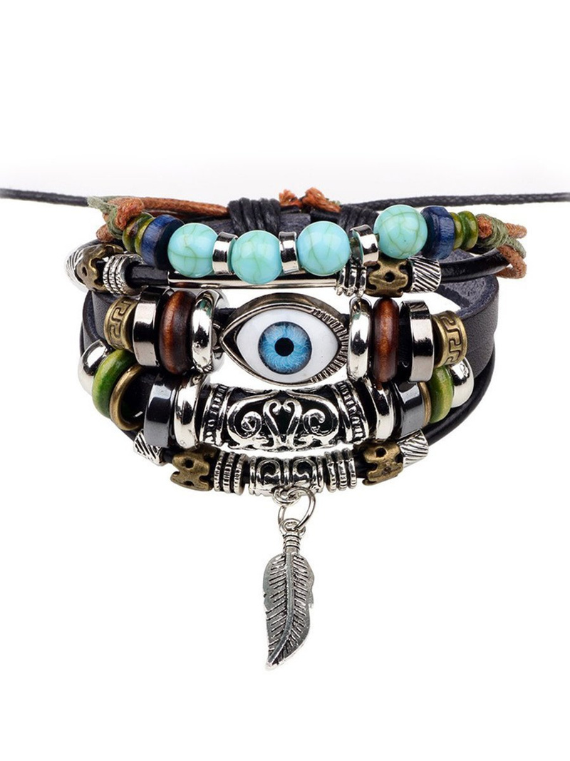 Bransoletka została wykonana z wysokiej jakości skóry syntetycznej w odcieniach koloru czarnego. Na przodzie znajdują się wielobarwne, metalowe ozdoby oraz kolorowe koraliki. Bransoletka posiada zapięcie regulowane w zakresie od 14 do 22 centymetrów.