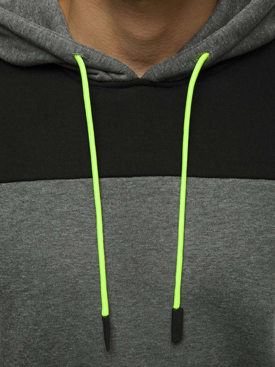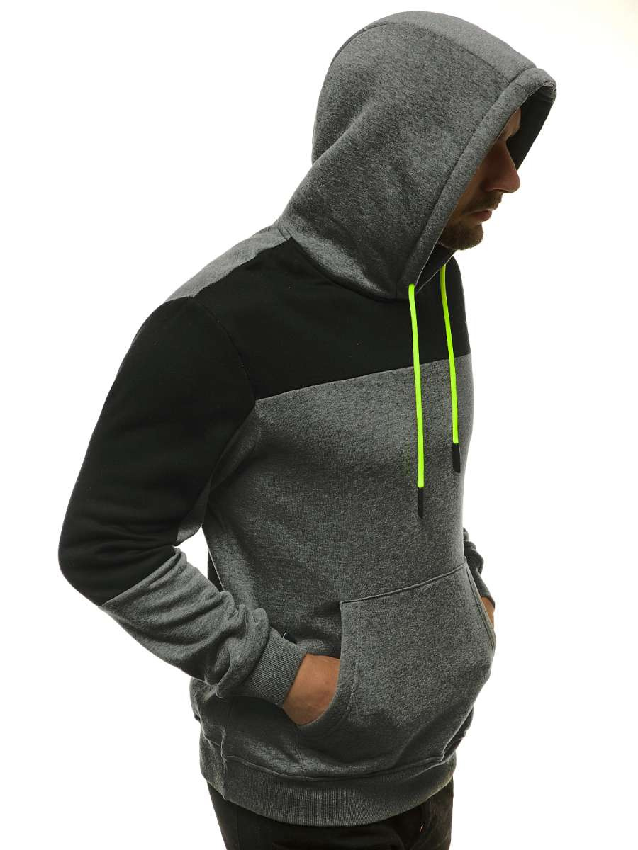 Bluza jest zakładana przez głowę. Ma praktyczny kaptur, który doskonale sprawdzać będzie się w chłodne, wietrzne, deszczowe dni. Bluza posiada kieszeń typu kangurka. Jej dół i rękawy są wykończone ściągaczami, które nadają całości sportowego charakteru. Dzięki kontrastowym łączeniom materiału, bluza prezentuje się bardzo oryginalnie. Wykonana jest ona z połączenia bawełny oraz poliestru. Sprawia to, że ładnie dopasowuje się do sylwetki, jest wygodna w noszeniu, miła w dotyku, nie rozciąga się i nie gniecie.