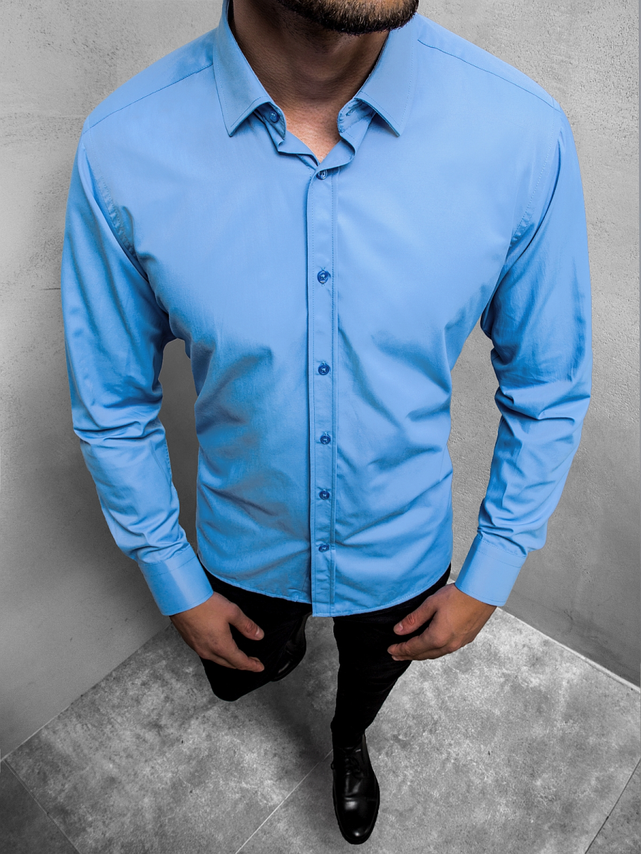 Błękitna koszula to absolutny must have w szafie każdego mężczyzny, bez względu na wiek czy typ sylwetki. Nadaje się ona na wiele różnych okazji. Taką koszulę założyć można na randkę, obiad w rodzinnym gronie, do biura, rozmowę o pracę czy spotkanie biznesowe. Ma ona uniwersalny, ponadczasowy fason, który nigdy nie wychodzi z mody. Koszula będzie się bardzo dobrze komponowała z innymi ubraniami z naszego sklepu internetowego. Połączyć można ją na przykład z marynarką, materiałowymi spodniami oraz półbutami.