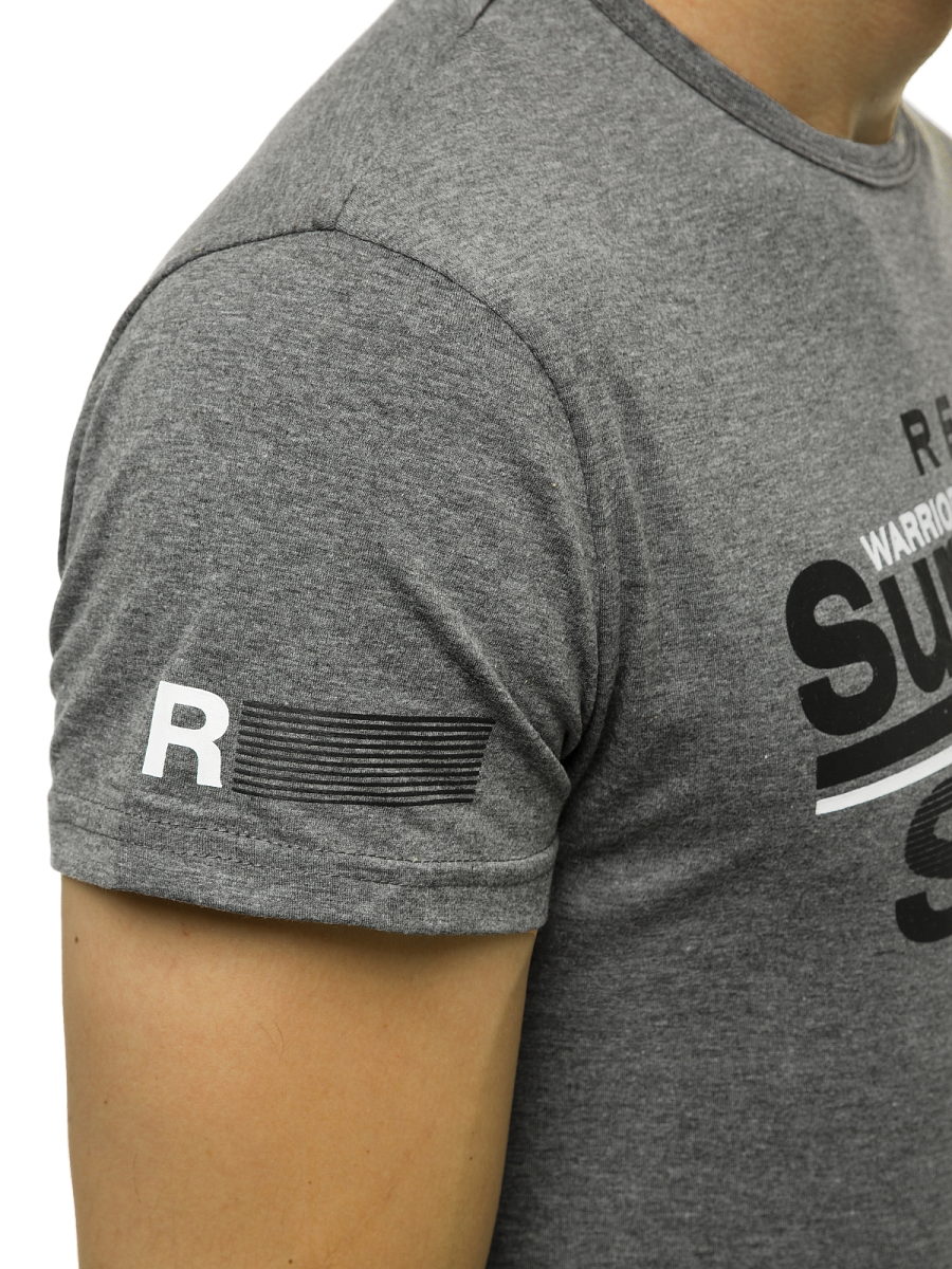 Koszulka ma klasyczny, okrągły dekolt typu U-neck. Na przodzie i rękawie znajduje się efektowny nadruk. T-shirt został wykonany z połączenia bawełny oraz poliestru. Sprawia to, że ładnie dopasowuje się do sylwetki, jest wygodna w noszeniu, miła w dotyku, nie rozciąga się i nie gniecie.