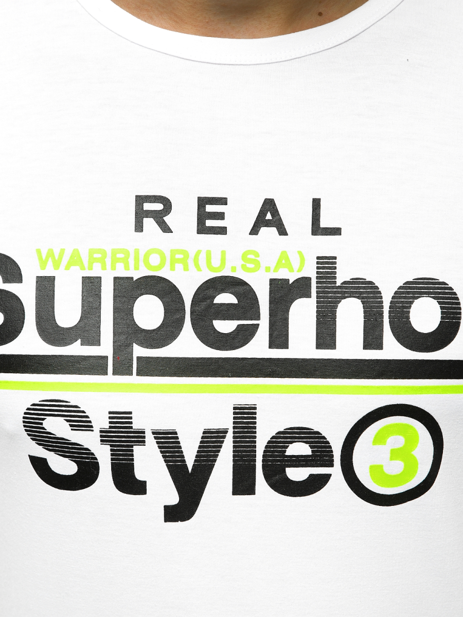 Koszulka ma klasyczny, okrągły dekolt typu U-neck. Na przodzie i rękawie znajduje się efektowny nadruk. T-shirt został wykonany z połączenia bawełny oraz poliestru. Sprawia to, że ładnie dopasowuje się do sylwetki, jest wygodna w noszeniu, miła w dotyku, nie rozciąga się i nie gniecie.