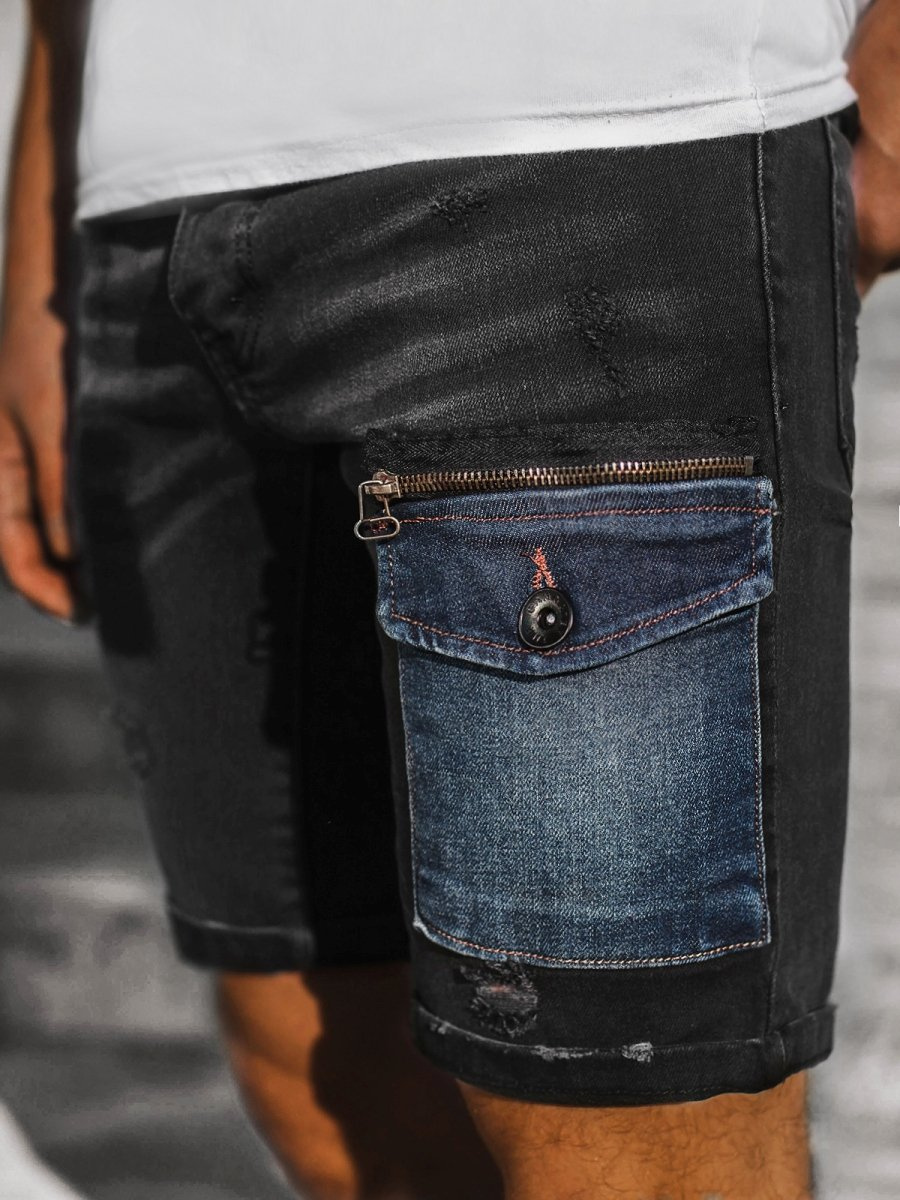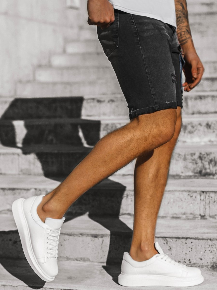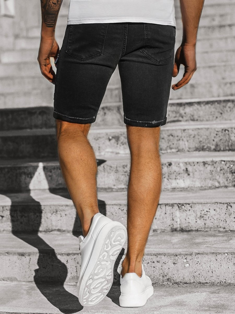 Spodenki mają praktyczne kieszenie z przodu i z tyłu, do których schować można klucze, portfel czy telefon. Oryginalnego wyglądu nadają im znajdujące się na nogawkach przetarcia oraz ozdobny zamek. Model ten wyprodukowany został z wysokiej jakości bawełny z domieszką elastanu. Sprawia to, że jest wygodny w noszeniu, przyjemny w dotyku, ładnie dopasowuje się do sylwetki, nie gniecie i nie rozciąga.