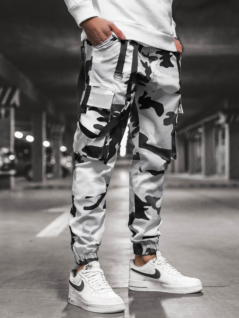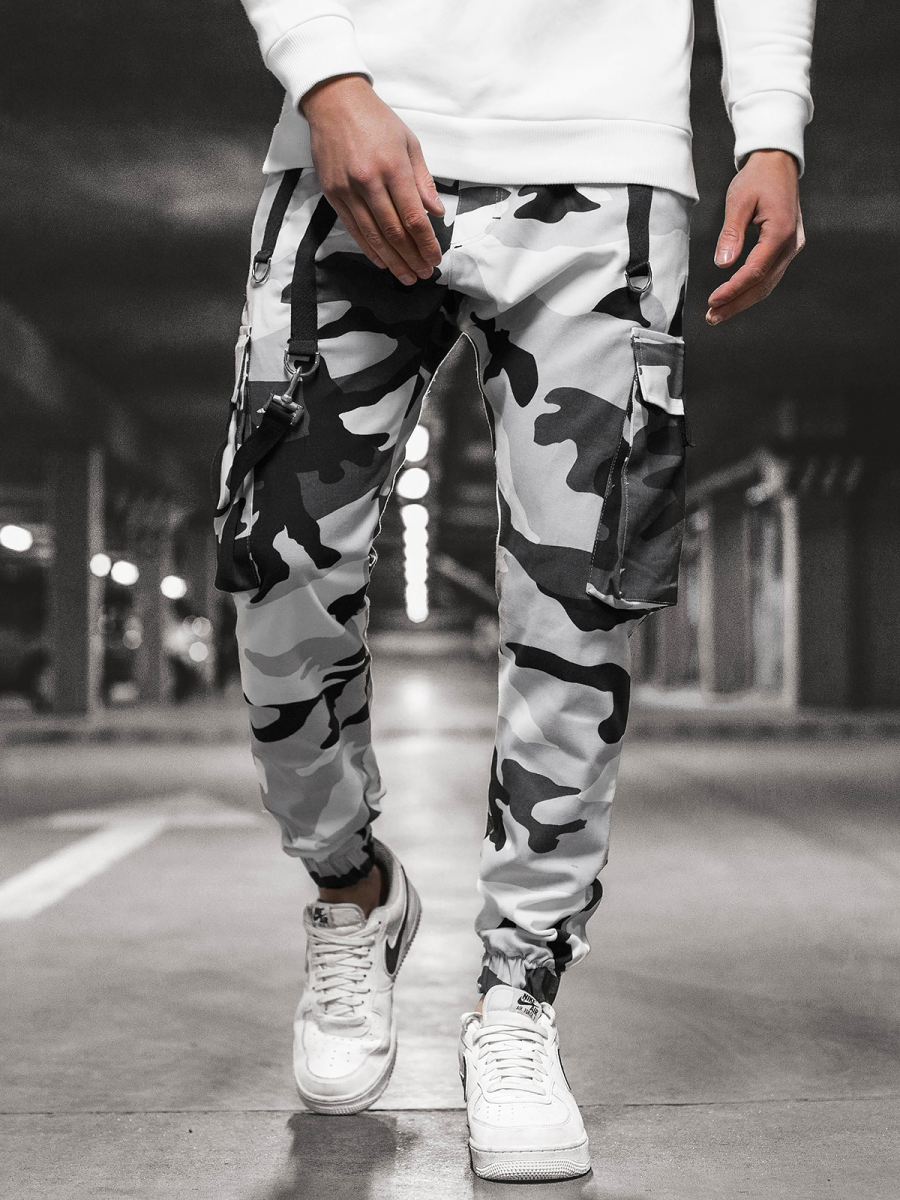 Spodnie mają fason typu joggery. Ich krój jest luźny, a pas i nogawki — wykończone ściągaczami. Joggery mają kieszenie z boku, z przodu oraz z tyłu. Oryginalnego wyglądu nadają im odpinane szelki. Spodnie wykonane zostały w całości z bawełny. Sprawia to, że są one przyjemne w dotyku, przewiewne oraz odporne na uszkodzenia i zagniecenia.