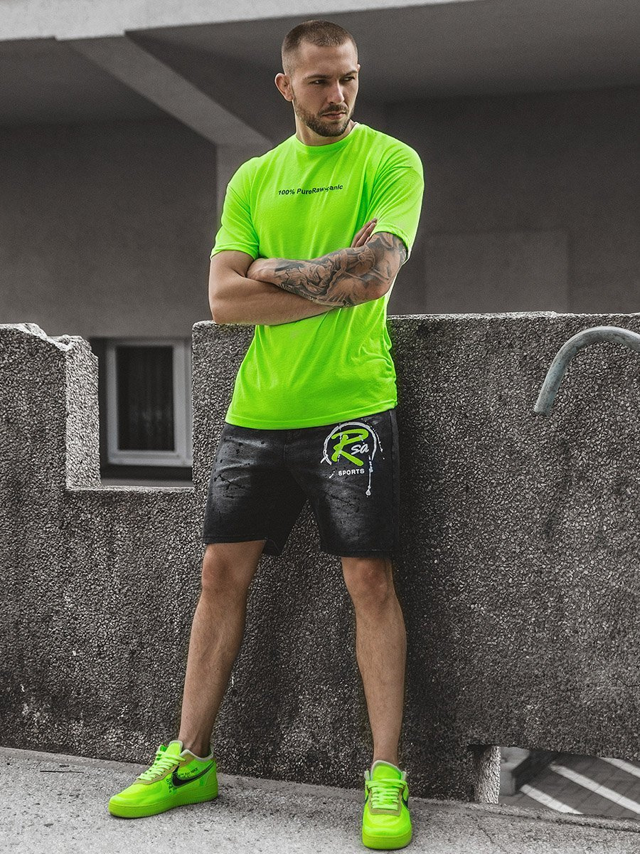 Spodenki wyglądają bardzo oryginalnie, czego zasługą jest znajdujący się na nogawce nadruk. W pasie mają one ściągacz, który nadaje im sportowego charakteru i sprawia, że ładnie układają się na ciele. Spodenki mają 2 kieszenie z przodu i 1 z tyłu, do których schować można klucze, portfel czy telefon. Wykonane zostały one w całości z wysokiej jakości bawełny, dzięki czemu są wygodne w noszeniu, przyjemne w dotyku i przewiewne.