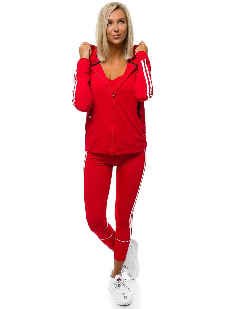W skład kompletu wchodzą 3 elementy: koszulka bez rękawów, rozpinana bluza z kapturem oraz spodnie. Oryginalnego charakteru nadają całości kontrastowe wstawki znajdujące się na rękawach i nogawkach. Zestaw został wykonany z połączenia nylonu oraz elastanu. Sprawia to, że całość ładnie dopasowuje się do sylwetki, nie rozciąga się i nie gniecie.