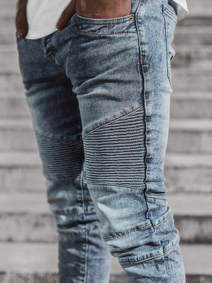 Spodnie mają praktyczne kieszenie z przodu i z tyłu, do których schować można klucze, portfel czy telefon. Oryginalnego wyglądu nadają im znajdujące się na nogawkach przeszycia oraz ozdobne zamki na dole. Jeansy zostały wykonane z wysokiej jakości bawełny z dodatkiem elastanu. Sprawia to, że ładnie dopasowują się do sylwetki, nie gniotą się i nie rozciągają, są miłe w dotyku oraz wygodne w noszeniu.