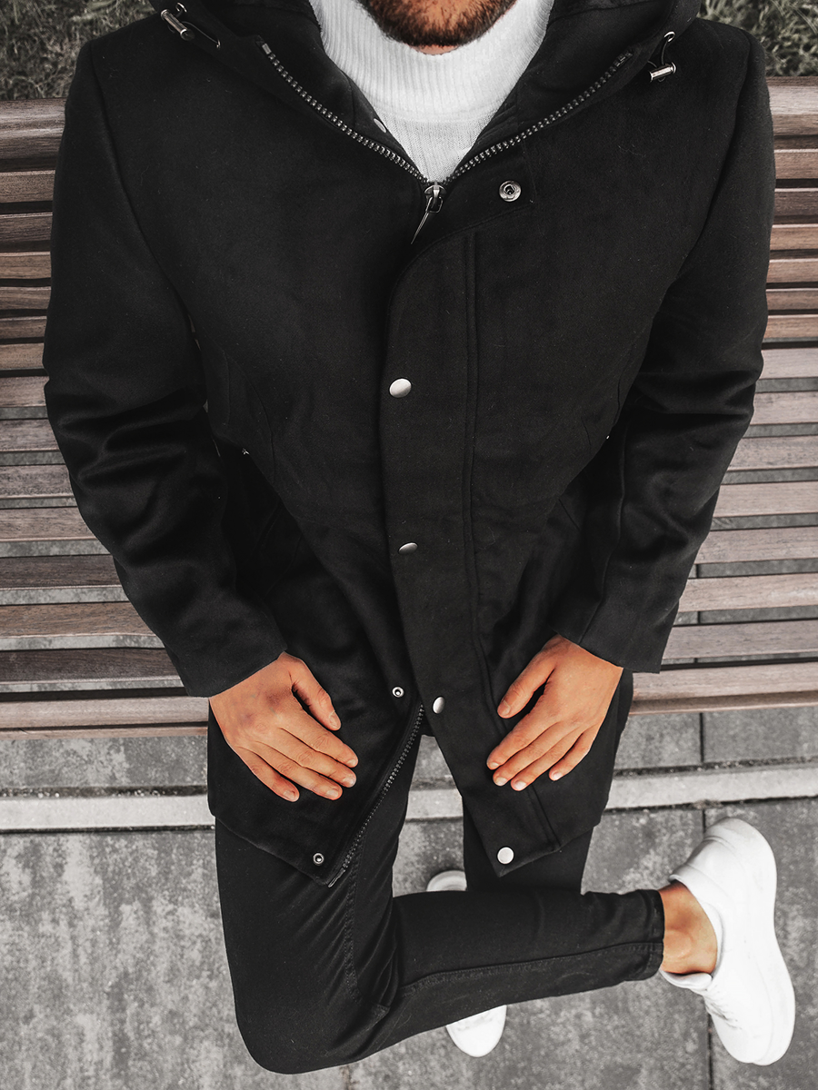 Płaszcz został wyprodukowany w całości z poliestru. Posiada on praktyczny kaptur, który znakomicie sprawdzać będzie się w chłodniejsze, deszczowe dni oraz podczas mocniejszych podmuchów wiatru. Płaszcz ma kieszenie po bokach i w środku, do których schować można telefon i klucze. Dzięki ociepleniu sztucznym futerkiem, skutecznie chroni on przed zmarznięciem.