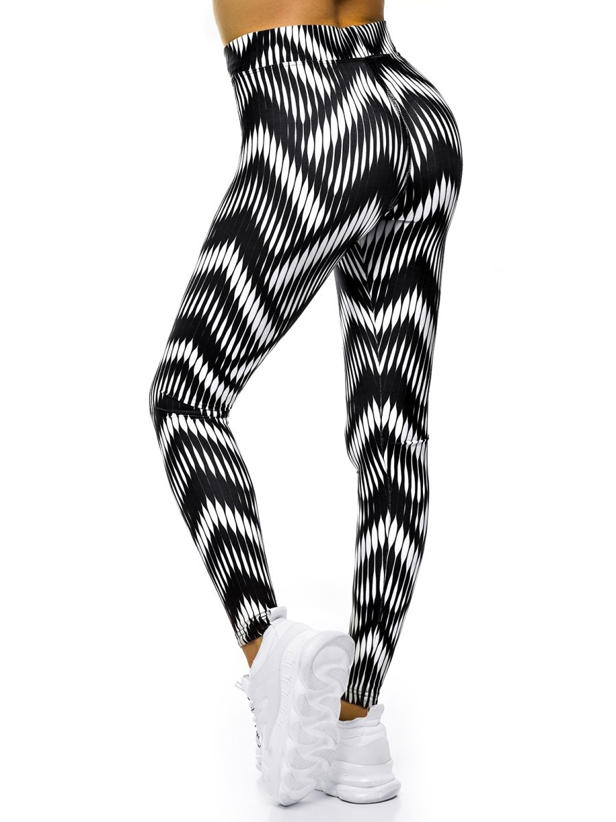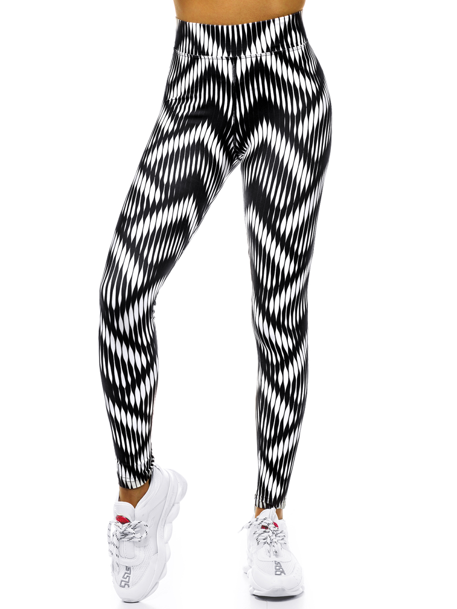 Legginsy pokrywa oryginalny, czarno — biały wzór, dzięki czemu prezentują się one bardzo oryginalnie, skutecznie przykuwając wzrok. Posiadają one wysoki stan, który skutecznie maskuje mankamenty sylwetki. Znajdujący się w pasie ściągacz chroni przed przesuwaniem się i zsuwaniem legginsów w czasie aktywności fizycznej. Zostały one wykonane z wysokiej jakości poliestru z dodatkiem elastanu, co sprawia, że są wygodne w noszeniu, lekkie, ładnie dopasowują się do sylwetki, nie rozciągają się i nie gniotą.