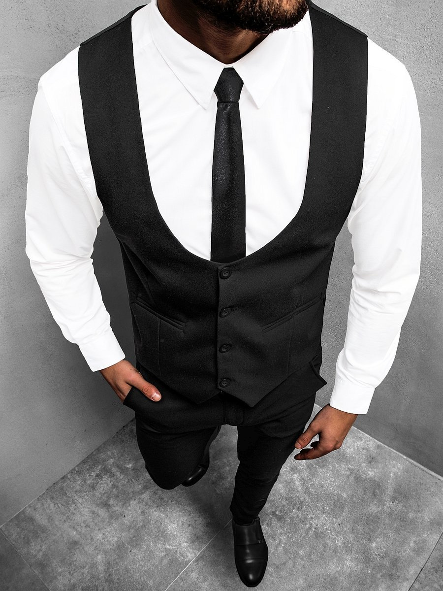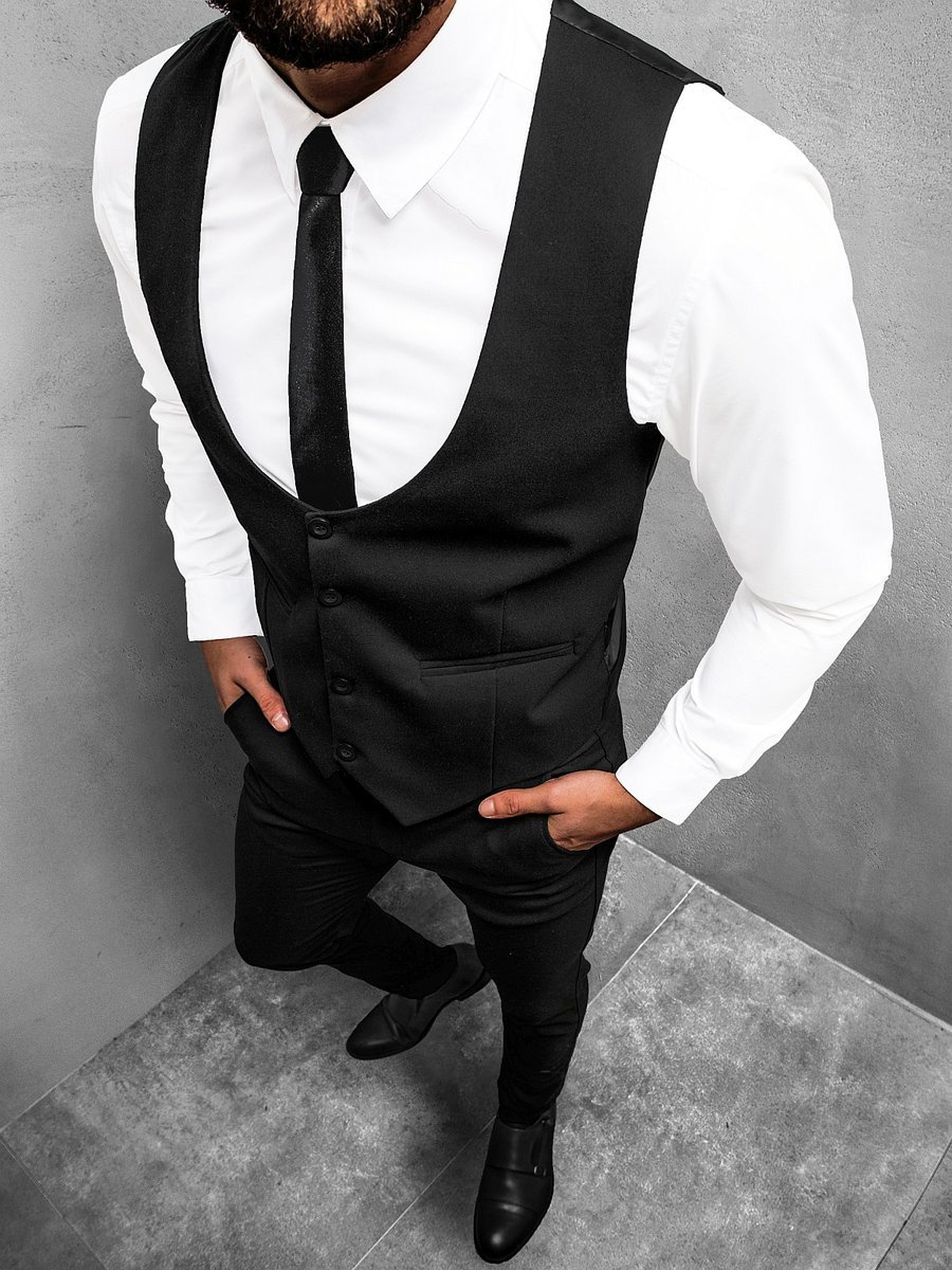 - ELEGANCKI KOMPLET MĘSKI Z NAJNOWSZEJ KOLEKCJI SKŁADAJĄCY SIĘ Z KAMIZELKI I SPODNI