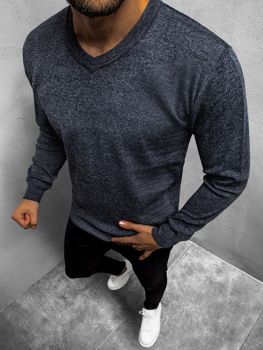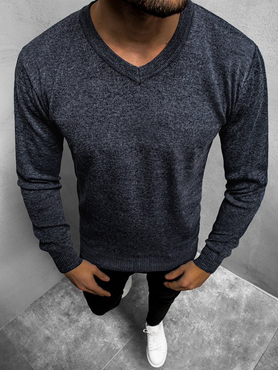 Sweter posiada dekolt w szpic, który nazywany jest także dekoltem V-Neck. To idealne rozwiązanie dla mężczyzn, którzy chcą optycznie wyszczuplić oraz wydłużyć swoją sylwetkę. Sweter bardzo ładnie dopasowuje się do ciała, co jest zasługą obecności poliestru. Jest on także miły w dotyku oraz wygodny w noszeniu. Jego dół oraz rękawy zostały wykończone ściągaczami, co nadaje mu sportowego charakteru.