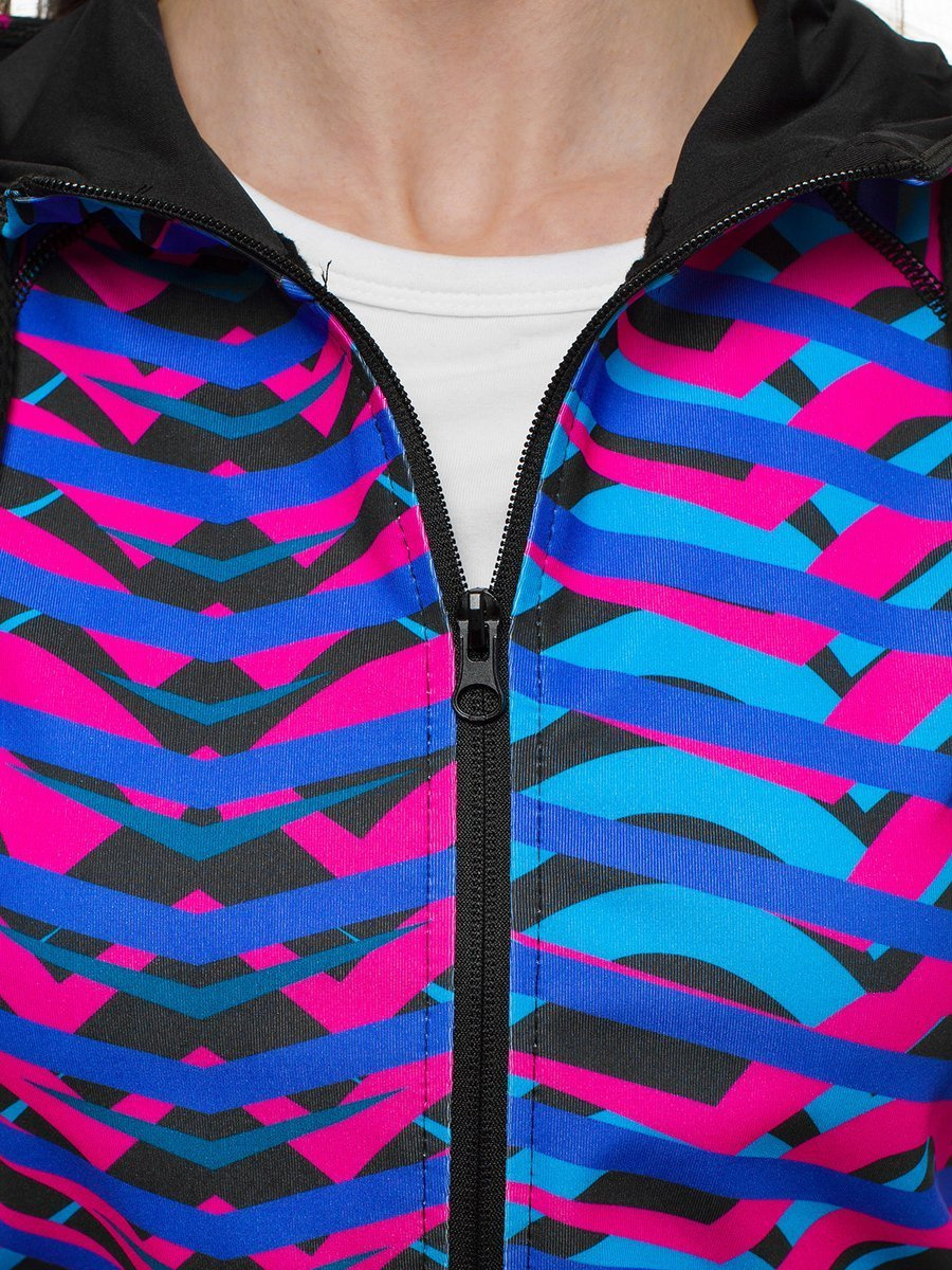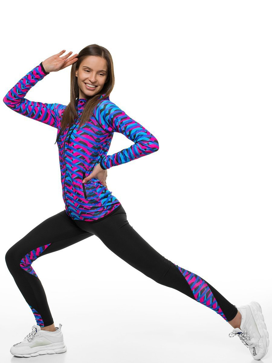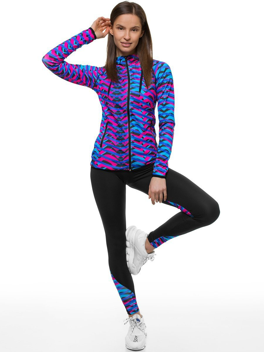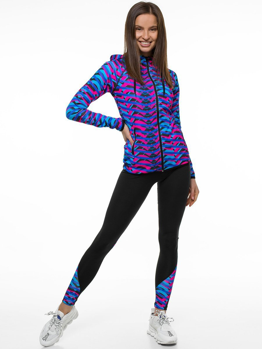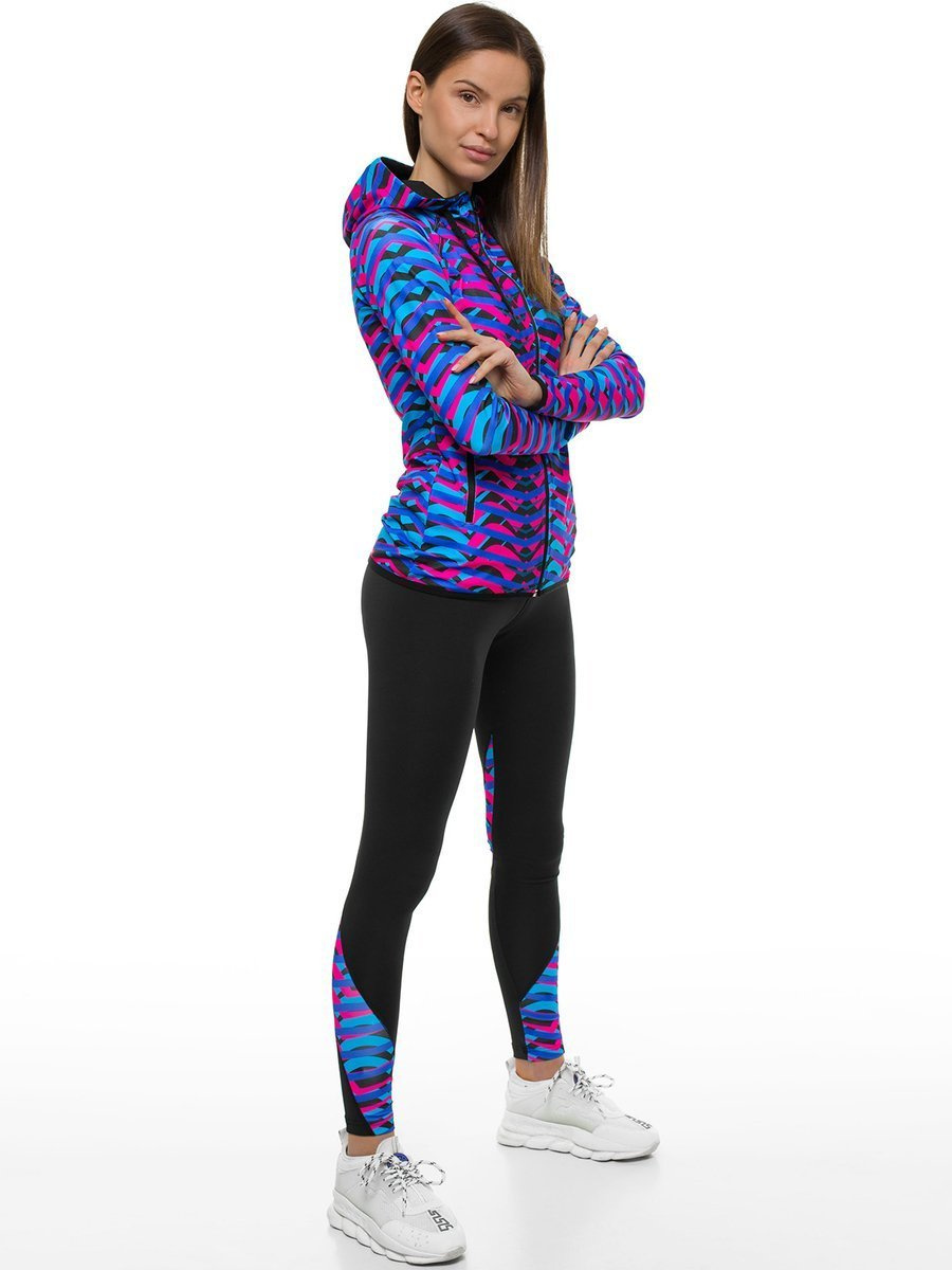 W skład zestawu dresowego wchodzą 2 elementy: bluza oraz spodnie. Pokrywający je designerski wzór nadaje im oryginalnego wyglądu. Bluza posiada praktyczny kaptur, który doskonale sprawdzać będzie się w chłodne, wietrzne, deszczowe dni. Po bokach znajdują się kieszenie. Komplet został wykonany z poliestru z domieszką elastanu. Sprawia to, że jest wygodny w noszeniu, miły w dotyku, nie rozciąga się z czasem i nie gniecie.