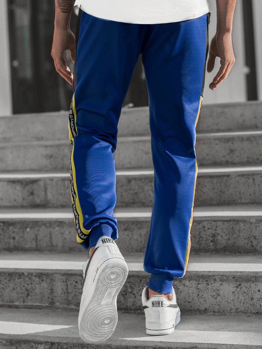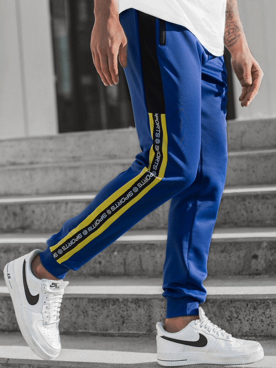 Spodnie zostały wykonane w całości z wysokiej jakości poliestru, dzięki czemu ładnie dopasowują się do sylwetki, nie rozciągają się, nie gniotą i szybko schną. Joggery męskie z lampasami Joggery znakomicie sprawdzają się jako element luźnych, niezobowiązujących stylizacji. Z powodzeniem nosić można je przez cały rok. Takie spodnie założyć można na spacer, zakupy czy spotkanie ze znajomymi. Bardzo dobrze będą pasowały do innych ubrań z naszego sklepu, na przykład bluz z kapturem.