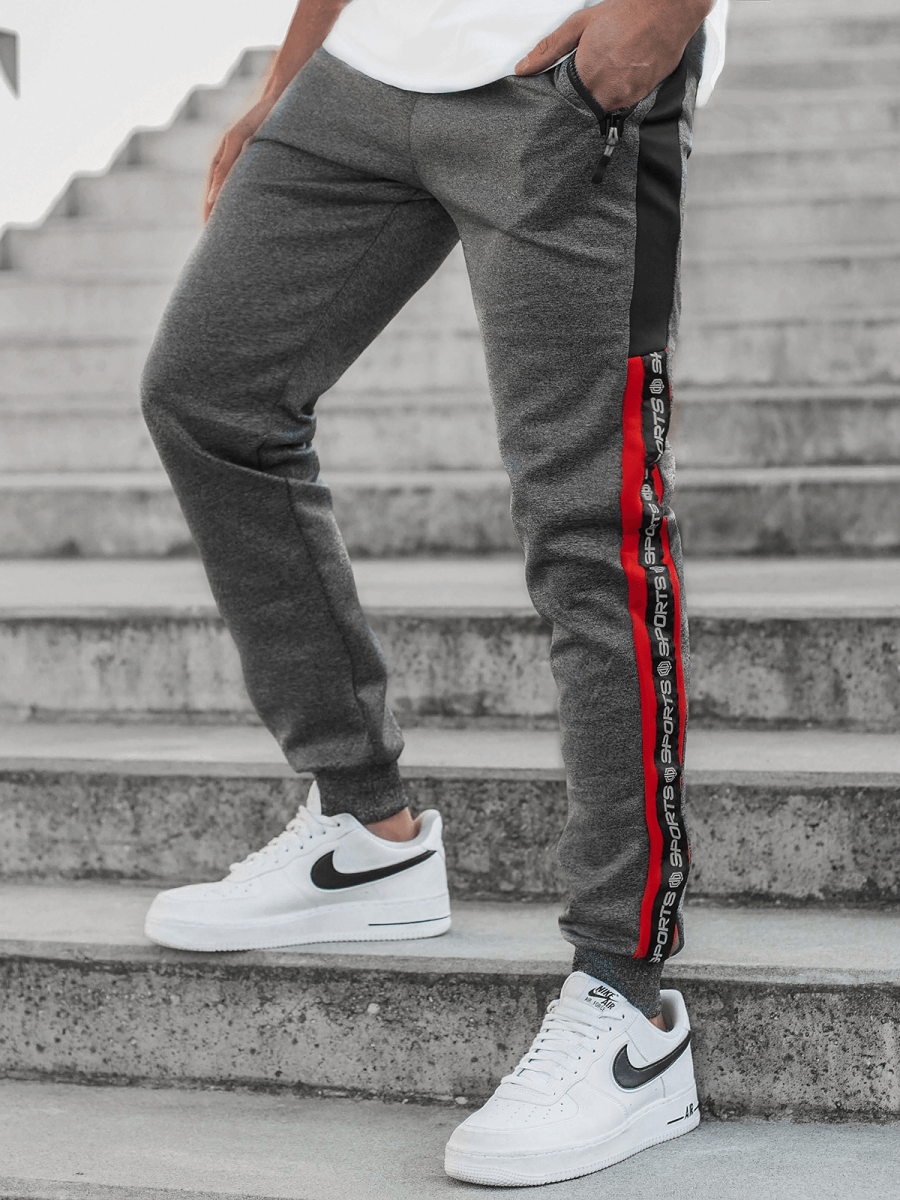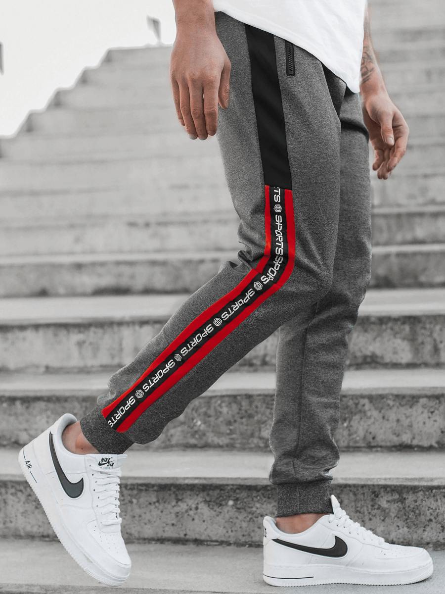 Spodnie mają pas i nogawki wykończone ściągaczami, dzięki czemu są wygodne w noszeniu — nie przekręcają się i nie zsuwają. Mają kieszenie po bokach zasuwane na zamek błyskawiczny, do których schować można klucze czy portfel. Oryginalnego wyglądu nadają im znajdujące się po bokach lampasy i nadruki.