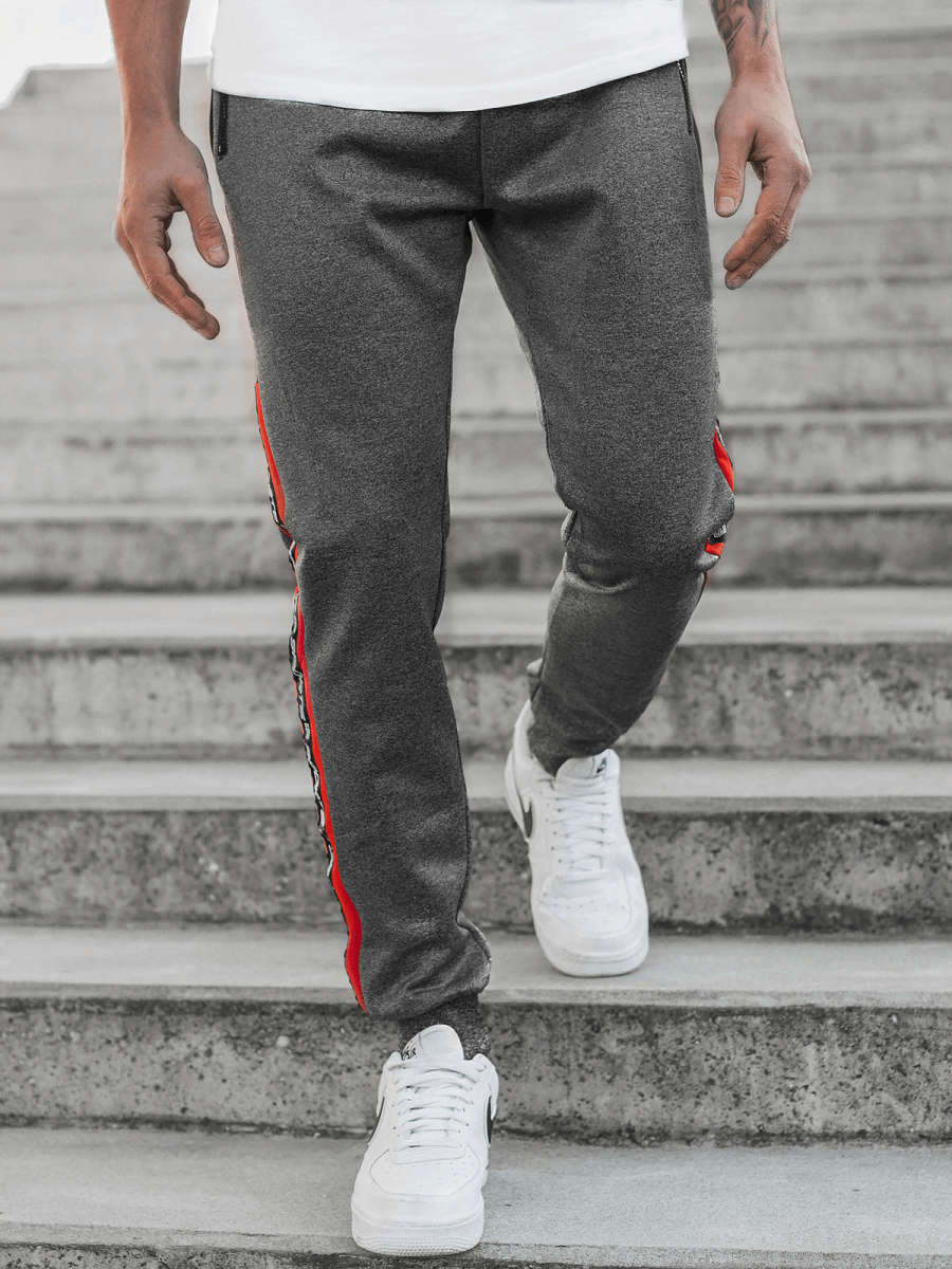 Spodnie zostały wykonane w całości z wysokiej jakości poliestru, dzięki czemu ładnie dopasowują się do sylwetki, nie rozciągają się, nie gniotą i szybko schną. Joggery męskie z lampasami Joggery znakomicie sprawdzają się jako element luźnych, niezobowiązujących stylizacji. Z powodzeniem nosić można je przez cały rok. Takie spodnie założyć można na spacer, zakupy czy spotkanie ze znajomymi. Bardzo dobrze będą pasowały do innych ubrań z naszego sklepu, na przykład bluz z kapturem.