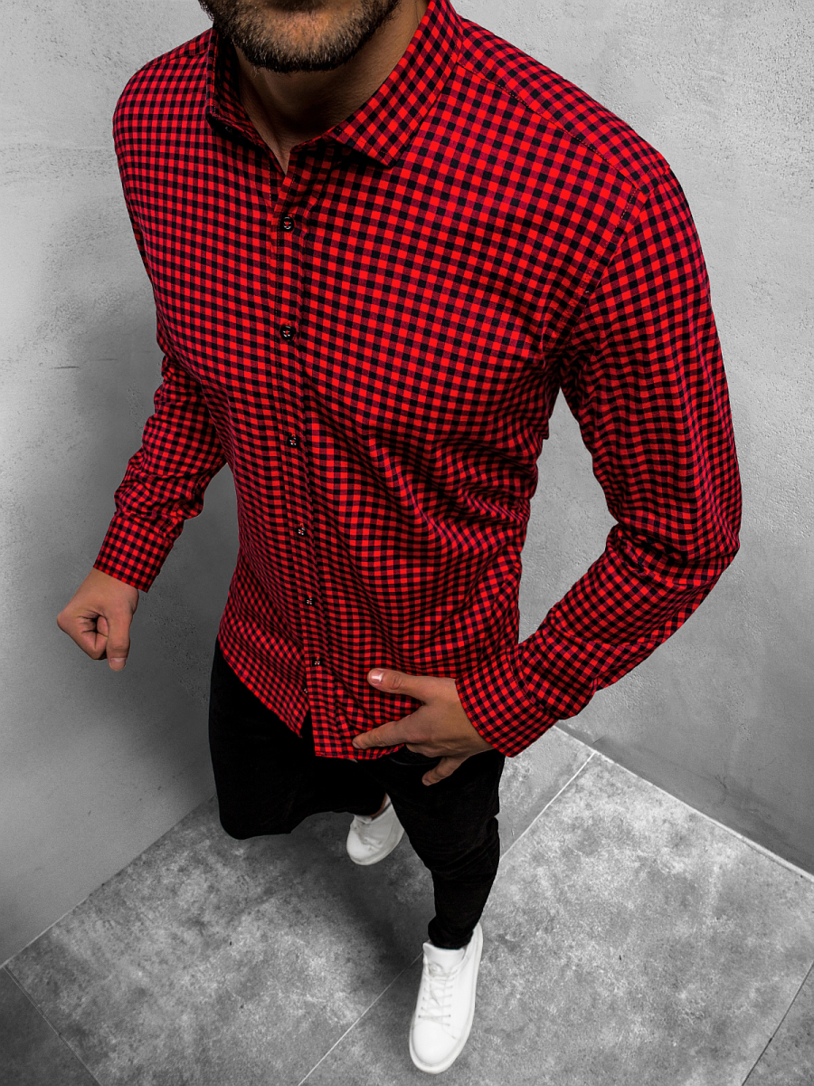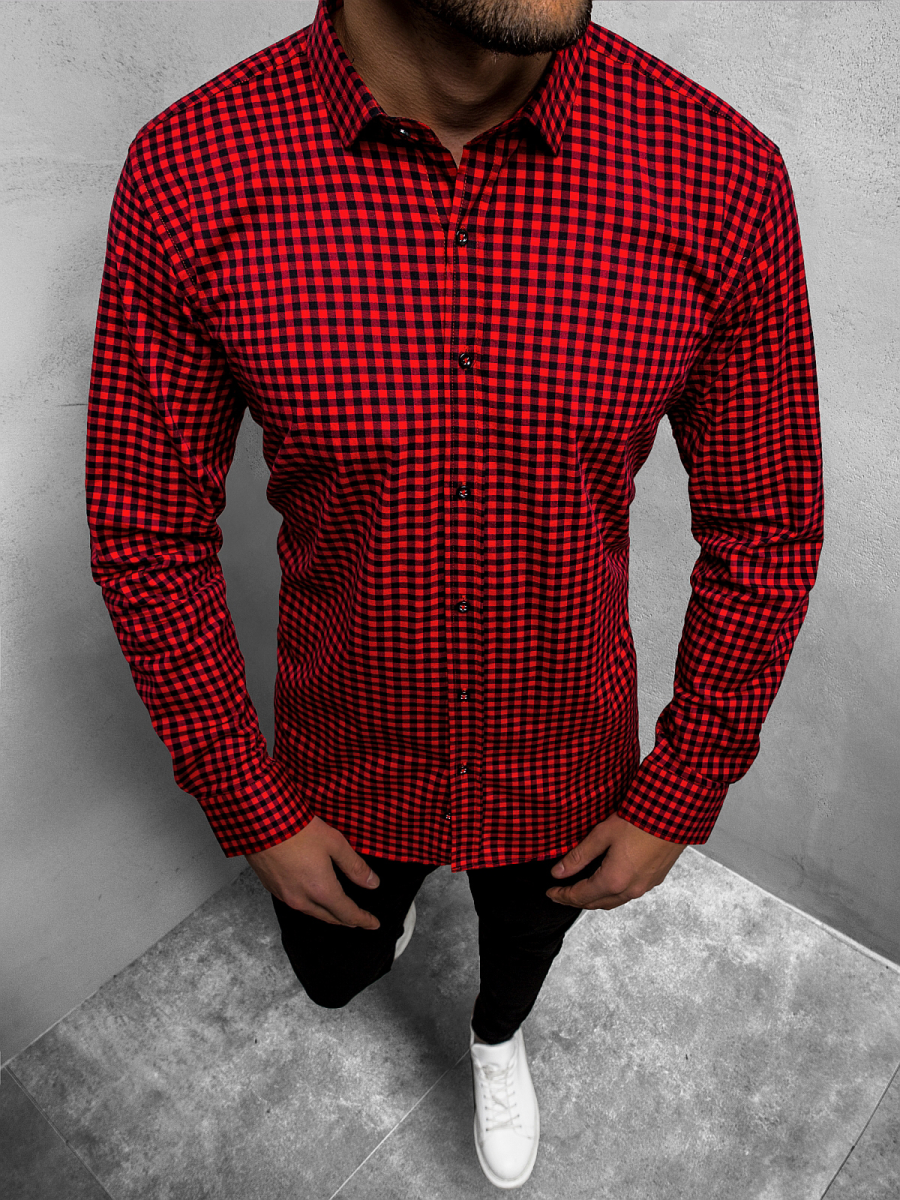 Koszula ma długi rękaw, zapięcie na guziki i klasyczny kołnierzyk typu kent. Pokrywa ją wzór w kratę. Koszula jest utrzymana w odcieniach czerwieni i czerni. Została ona wykonana z bawełny z domieszką elastanu. Sprawia to, że jest wygodna w noszeniu, nie rozciąga się, nie gniecie i ładnie dopasowuje się do sylwetki. Koszula jest także miła w dotyku i odporna na uszkodzenia.
