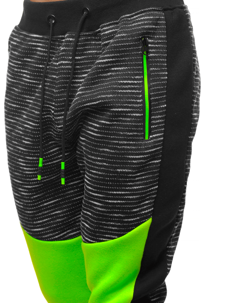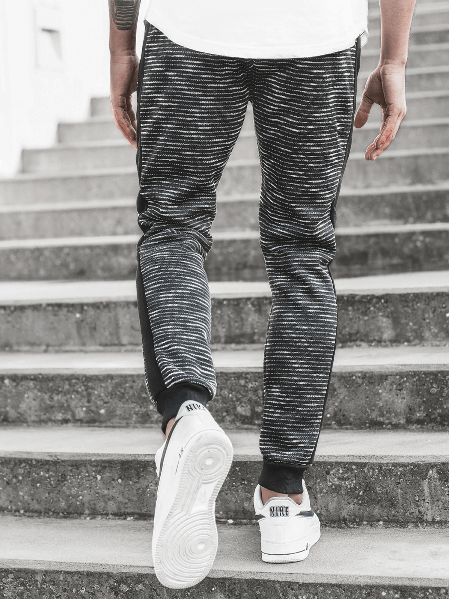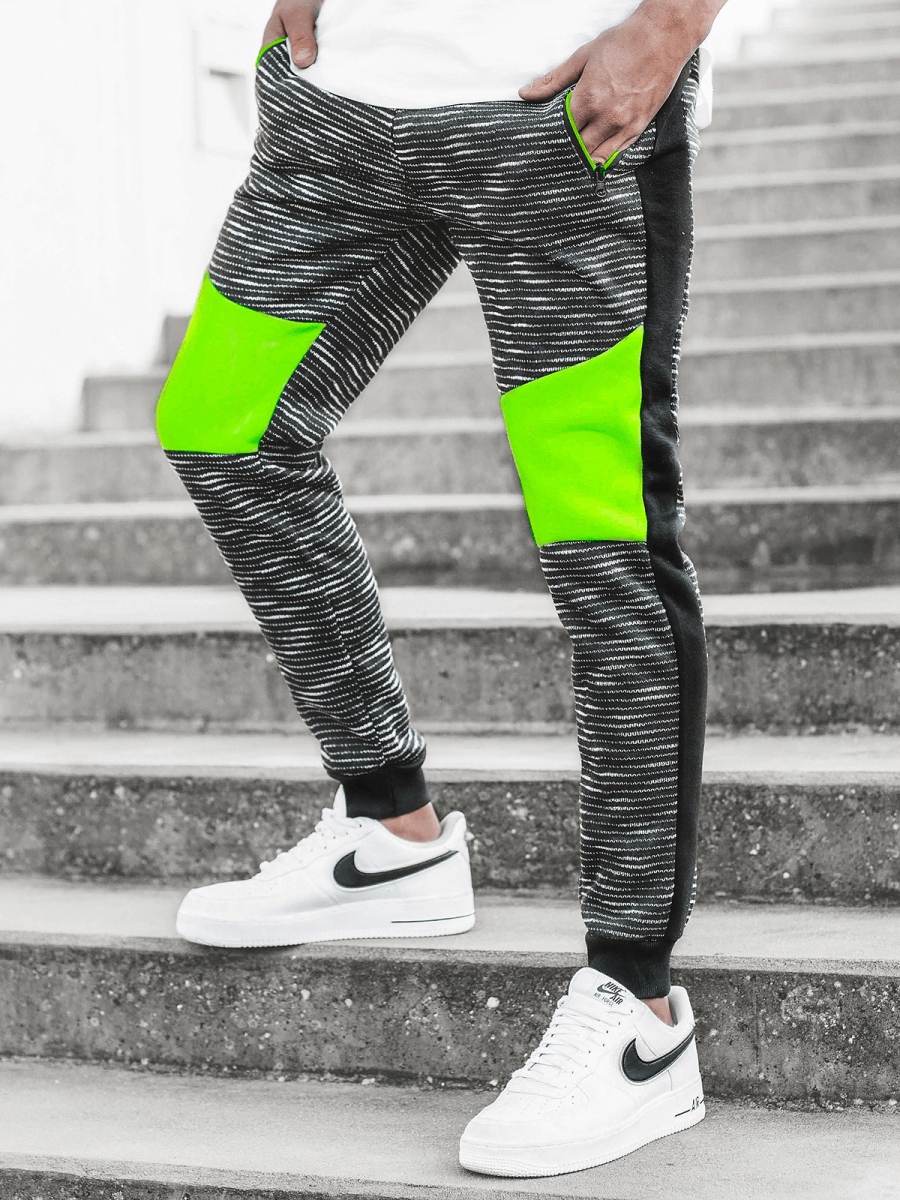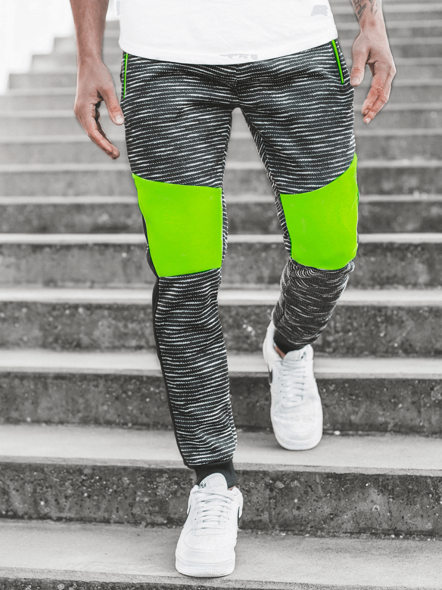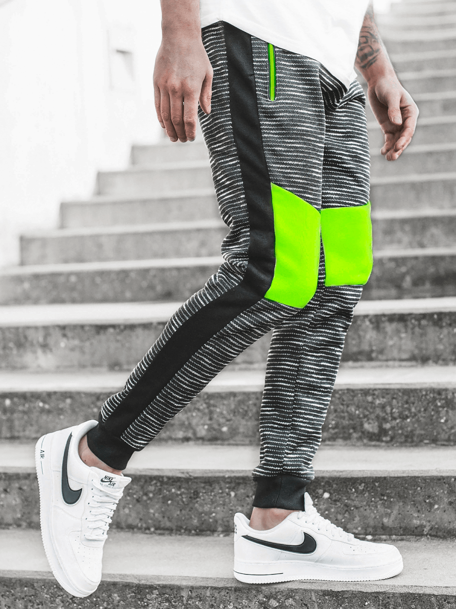 Nogawki joggerów zdobią kontrastowe łączenia tkaniny, które nadają im oryginalnego wyglądu. Ich pas i nogawki są wykończone ściągaczami. Spodnie mają kieszenie po bokach na zamek błyskawiczny, do których schować można klucze czy telefon. Joggery zostały wyprodukowane z bawełny oraz poliestru, co sprawia, że są bardzo wygodne w noszeniu, miłe w dotyku, miękkie, nie rozciągają się z czasem, nie gniotą i ładnie dopasowują się do ciała.