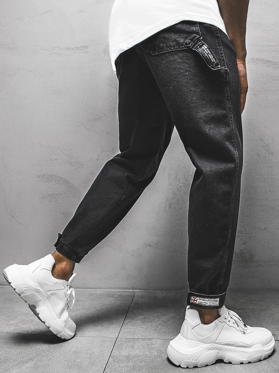 Spodnie mają luźny fason typu joggery. Przy nogawkach znajdują się ściągacze nadające im sportowego charakteru. Joggery posiadają zapięcie na rzep i kieszenie z przodu oraz z tyłu. Zostały one wykonany z wysokiej jakości bawełny z domieszką elastanu, dzięki czemu są bardzo wygodne w noszeniu, przyjemne w dotyku, ładnie dopasowują się do sylwetki, nie rozciągają z czasem i nie gniotą.