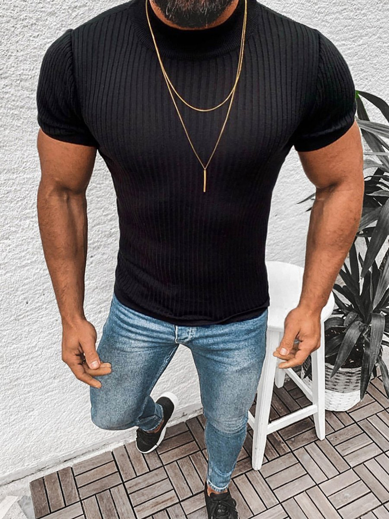 Bluzka męska z dzianiny, krótki rękaw czarny OZONEE L/2295