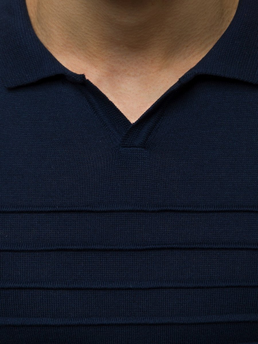 Koszulka ma krótki rękaw i klasyczny kołnierzyk typu kent. Pokrywa ją efektowny, prążkowany wzór. Polówka została wykonana z połączenia bawełny, akrylu oraz wiskozy, dzięki czemu ładnie dopasowuje się do sylwetki, nie rozciąga i nie gniecie, jest wygodna w noszeniu i miła w dotyku.