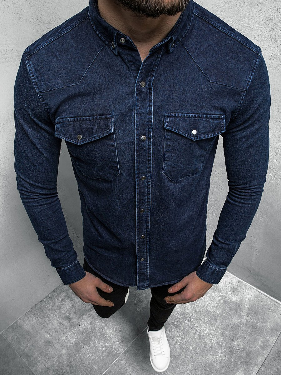 Koszula męska jeansowa granatowa OZONEE O/3466