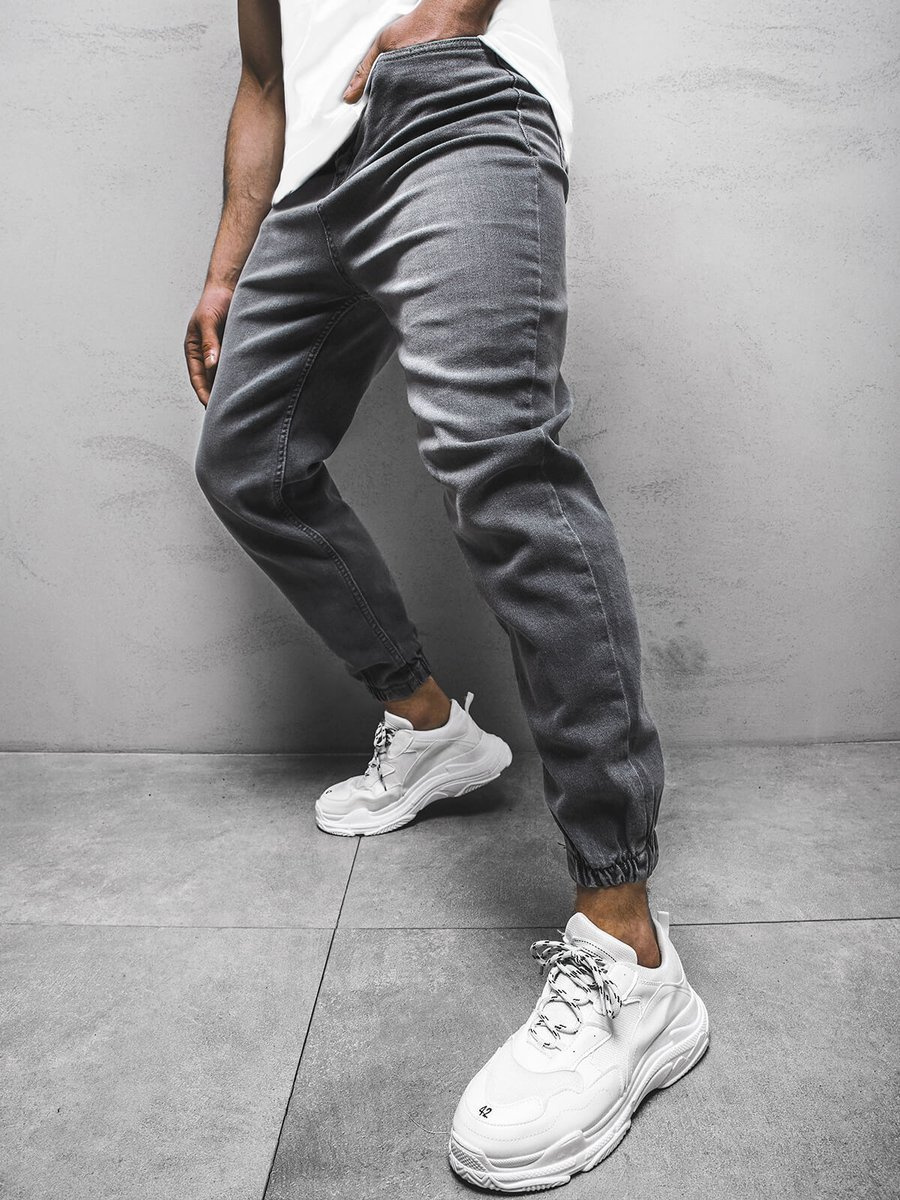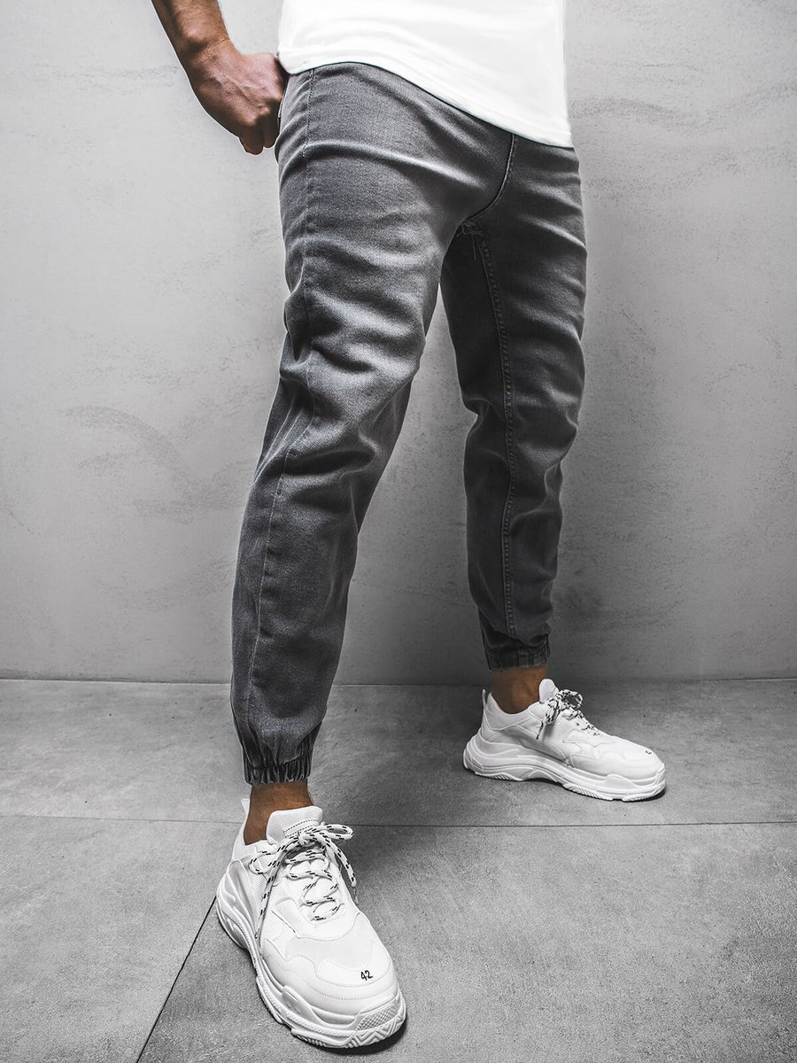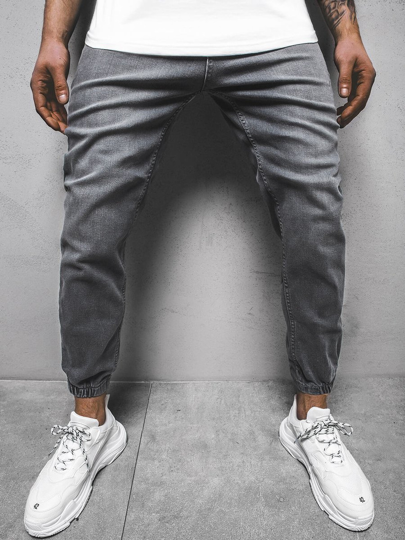 Spodnie męskie joggery jeansowe grafitowe OZONEE DP/674