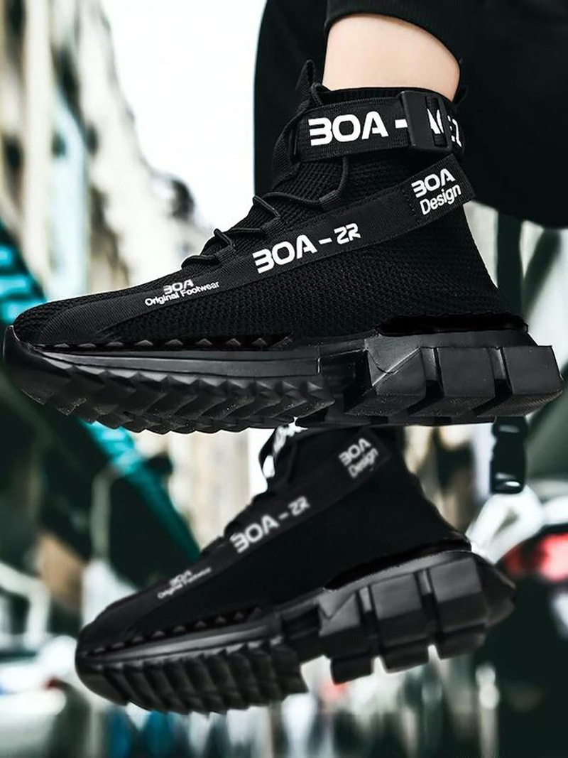 Sneakersy męskie pochodzą z najnowszej kolekcji. Zostały one wykonane z wysokiej jakości tekstylnego materiału typu siatka. Buty sięgają za kostkę. Oryginalnego wyglądu nadają im pokrywające je nadruki, ozdobne wstawki oraz klamra. Sneakersy są wiązane na sznurowadła.