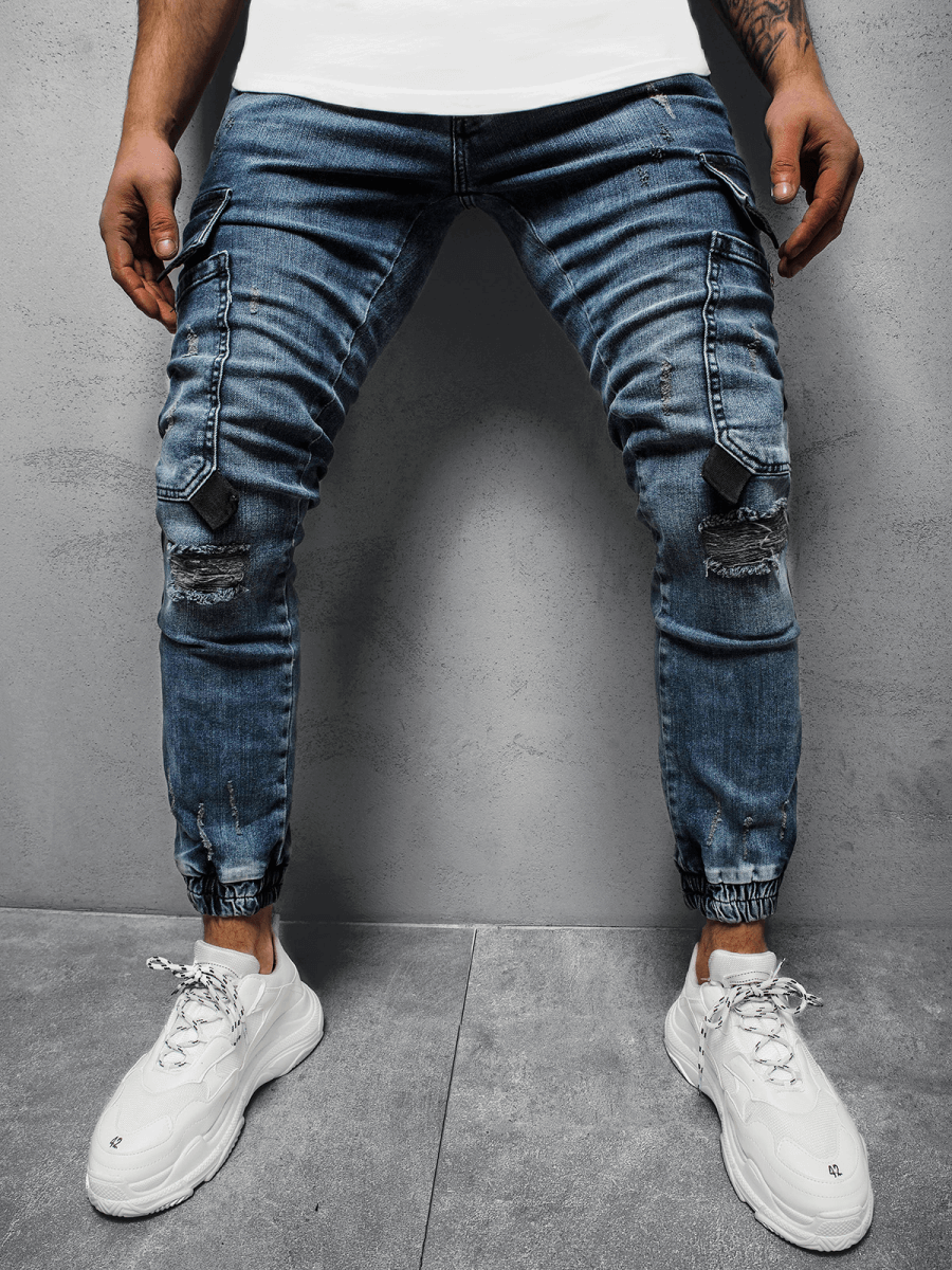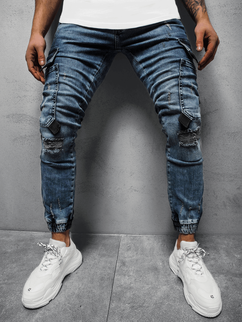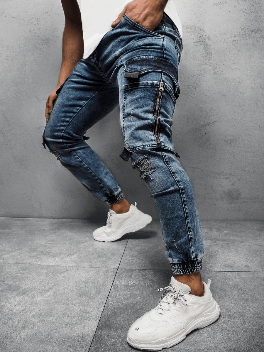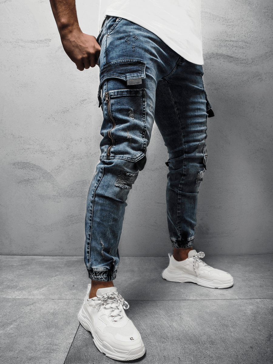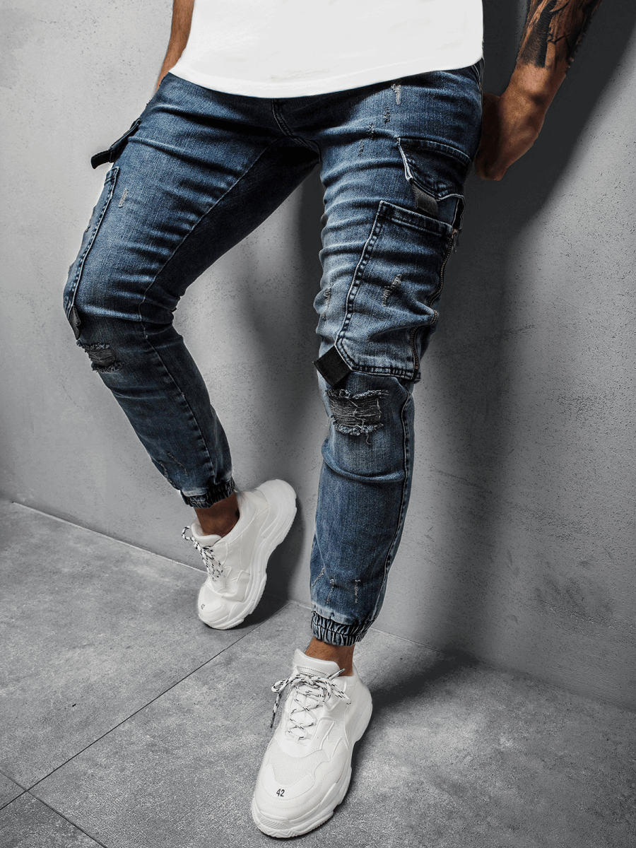 Spodnie mają kieszenie z przodu, z tyłu oraz po bokach. Przy nogawkach znajdują się ściągacze, które nadają im sportowego charakteru. Dzięki ozdobnym zamkom i przetarciom, spodnie prezentują się bardzo efektownie. Zostały one wykonane z bawełny z domieszką elastanu. Sprawia to, że ładnie dopasowują się do sylwetki, są wygodne w noszeniu, przyjemne w dotyku i odporne na uszkodzenia oraz zagniecenia.