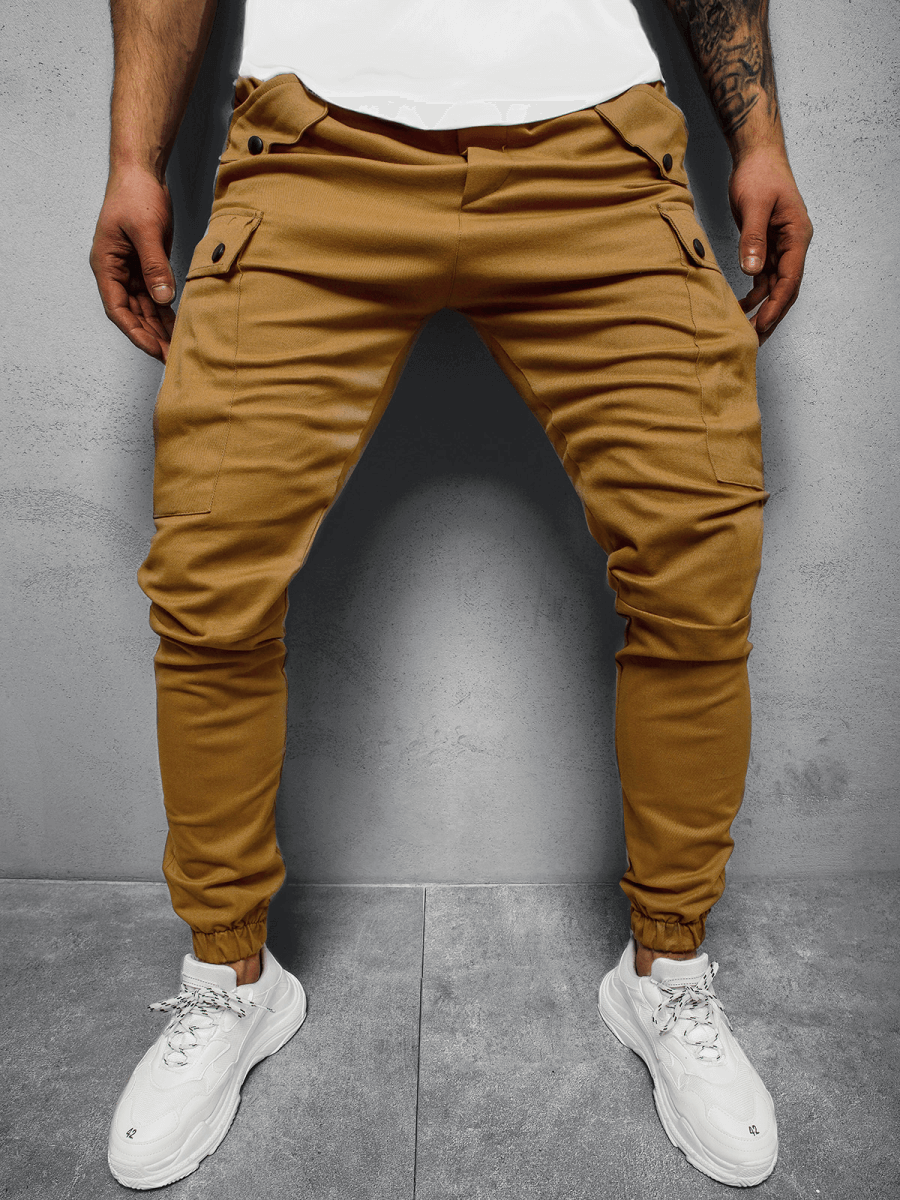Spodnie mają fason typu chinosy. Cechą charakterystyczną tego typu odzieży jest między innymi duża ilość kieszeni. W tym przypadku znajdują się one z boku, z przodu oraz z tyłu. Są one na tyle pojemne, że z łatwością pomieszczą telefon, klucze czy portfel. Sportowego charakteru nadają spodniom ściągacze znajdujące się w pasie i przy nogawkach. Chinosy zostały wyprodukowane z bawełny. Jest to tkanina wygodna w noszeniu, przyjemna w dotyku, przewiewna i odporna na uszkodzenia oraz zagniecenia.
