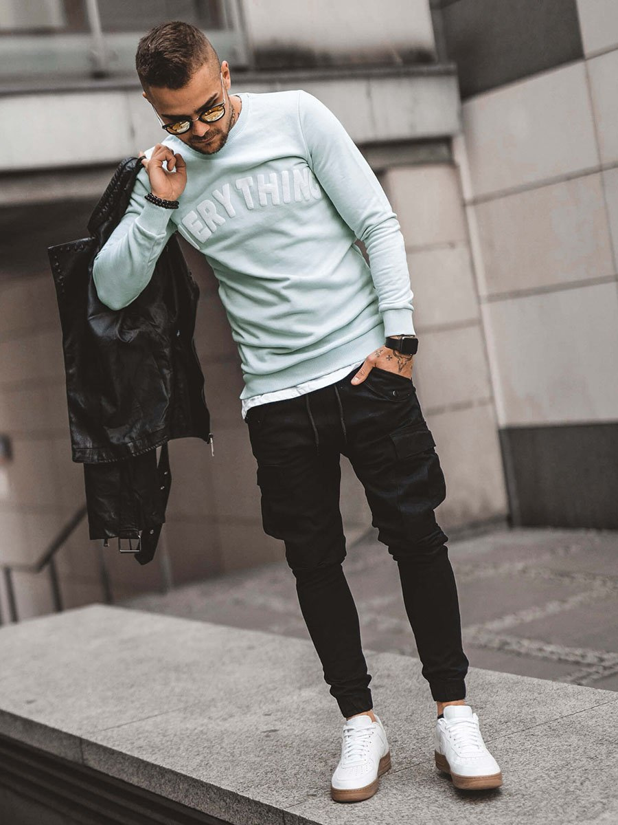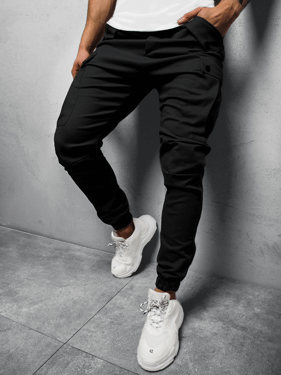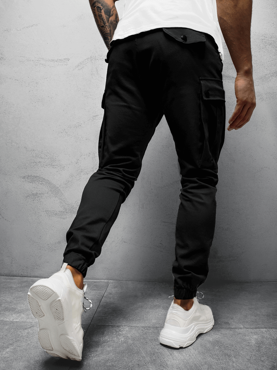 Spodnie mają fason typu chinosy. Cechą charakterystyczną tego typu odzieży jest między innymi duża ilość kieszeni. W tym przypadku znajdują się one z boku, z przodu oraz z tyłu. Są one na tyle pojemne, że z łatwością pomieszczą telefon, klucze czy portfel. Sportowego charakteru nadają spodniom ściągacze znajdujące się w pasie i przy nogawkach. Chinosy zostały wyprodukowane z bawełny. Jest to tkanina wygodna w noszeniu, przyjemna w dotyku, przewiewna i odporna na uszkodzenia oraz zagniecenia.