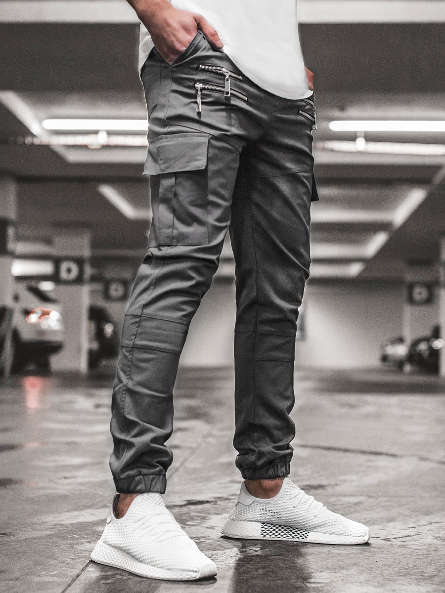 Spodnie męskie chino joggery grafitowe OZONEE ZAZ/191376