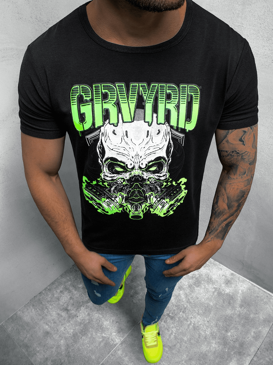 T-Shirt męski z nadrukiem czarny OZONEE JS/KS2653