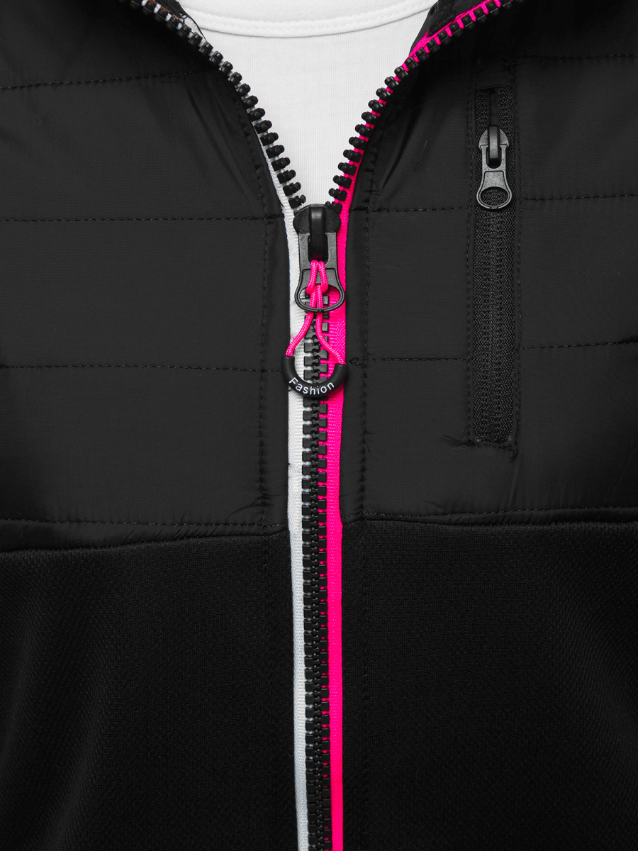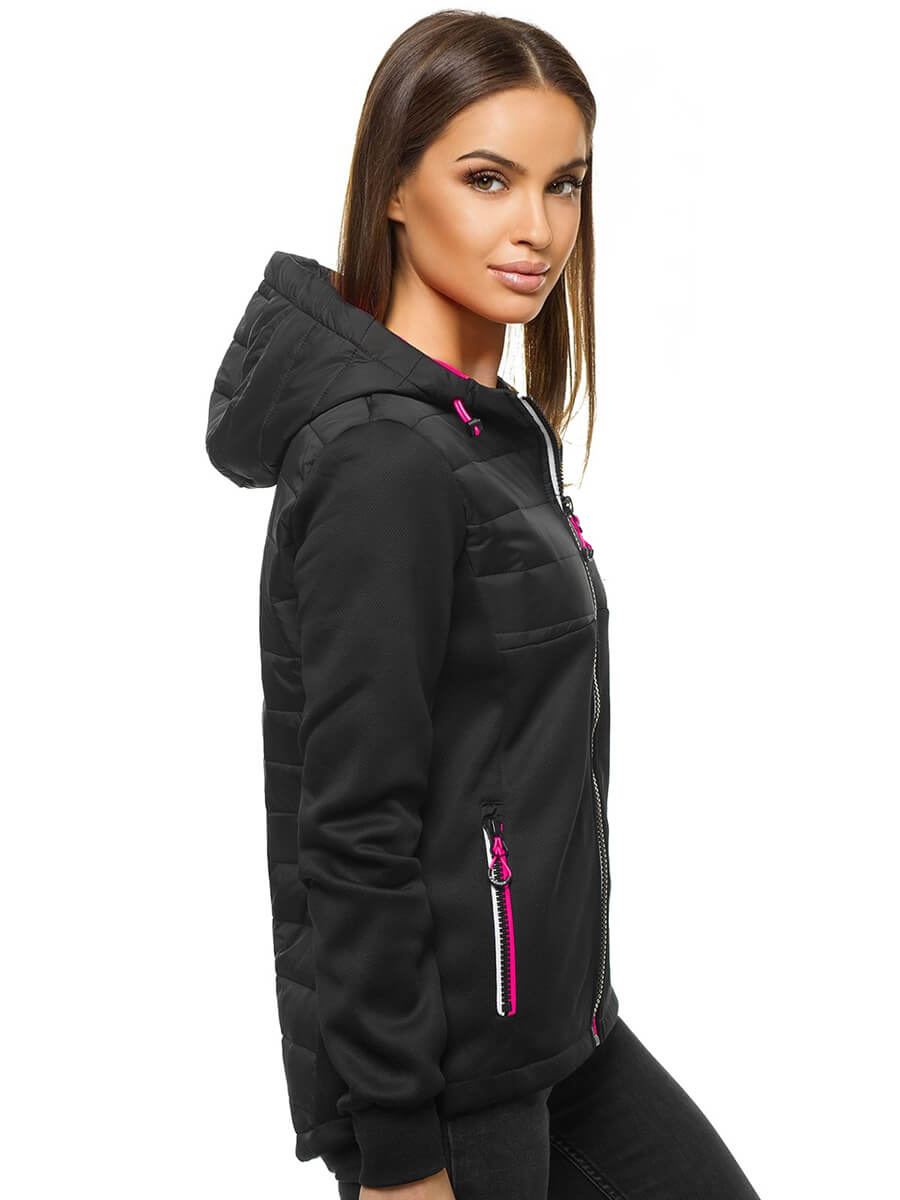 Kurtka jest zapinana na zamek błyskawiczny. Posiada praktyczny kaptur, który bardzo dobrze sprawdzać będzie się w chłodne, wietrzne deszczowe dni. Po bokach znajdują się kieszenie na zamek, do których schować można klucze, telefon czy portfel. Pikowania na przodzie i z tyłu oraz ozdobny zamek z przodu imitujący kieszonkę nadają kurtce oryginalnego wyglądu. Została ona wykonana w całości z poliestru, dzięki czemu ładnie dopasowuje się do sylwetki i szybko schnie.