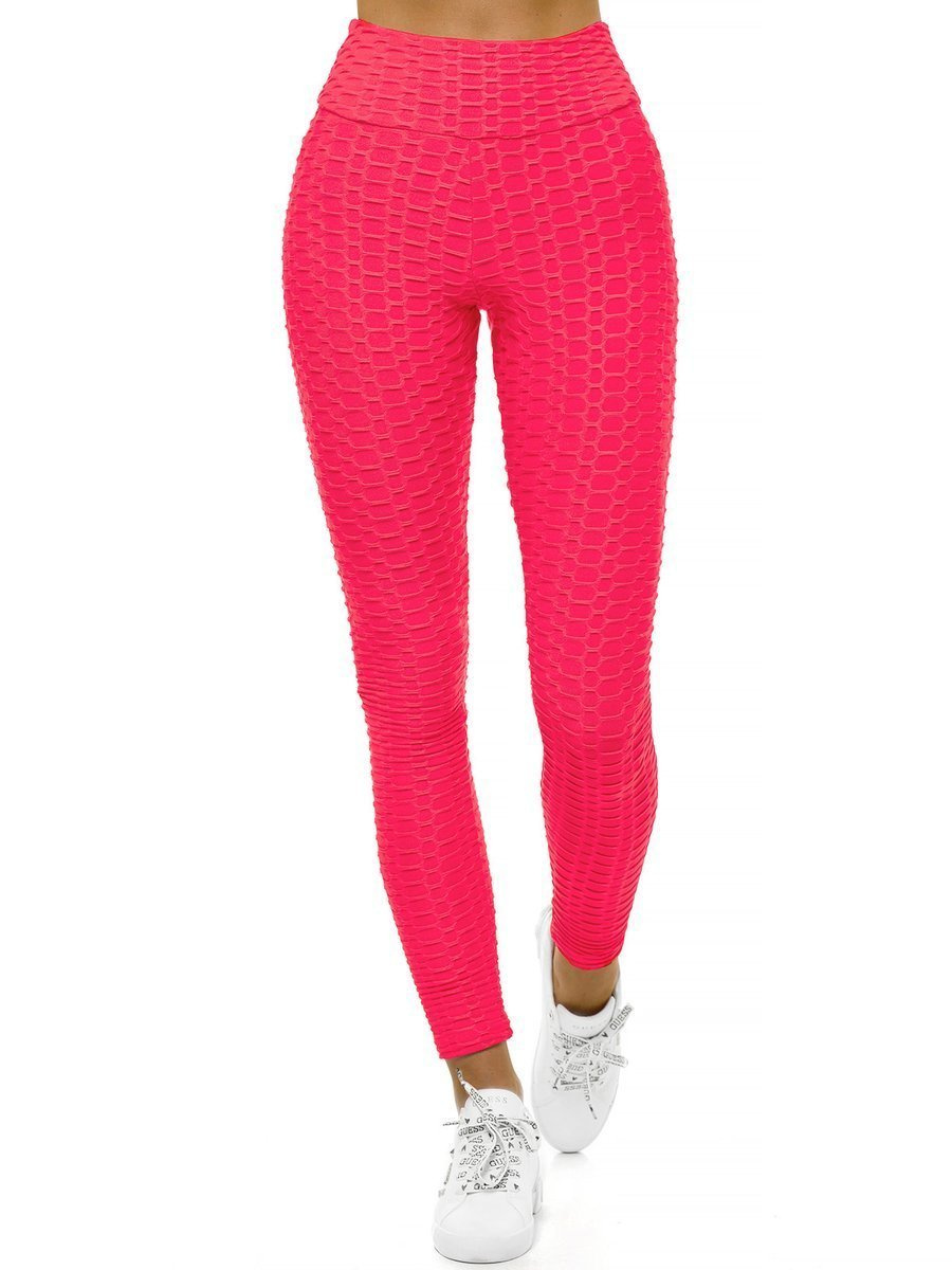 Legginsy posiadają pas ze ściągaczem, dzięki czemu są bardzo wygodne w noszeniu. Ich wysoki stan skutecznie maskuje mankamenty sylwetki, takie jak wystający brzuszek czy boczki. Wypukły wzór nadaje legginsom oryginalnego wyglądu. Zostały one wykonane z wysokiej jakości poliestru z domieszką elastanu. Sprawia to, że ładnie dopasowują się do sylwetki, nie krępują ruchów, nie rozciągają z czasem, nie gniotą i szybko schną.